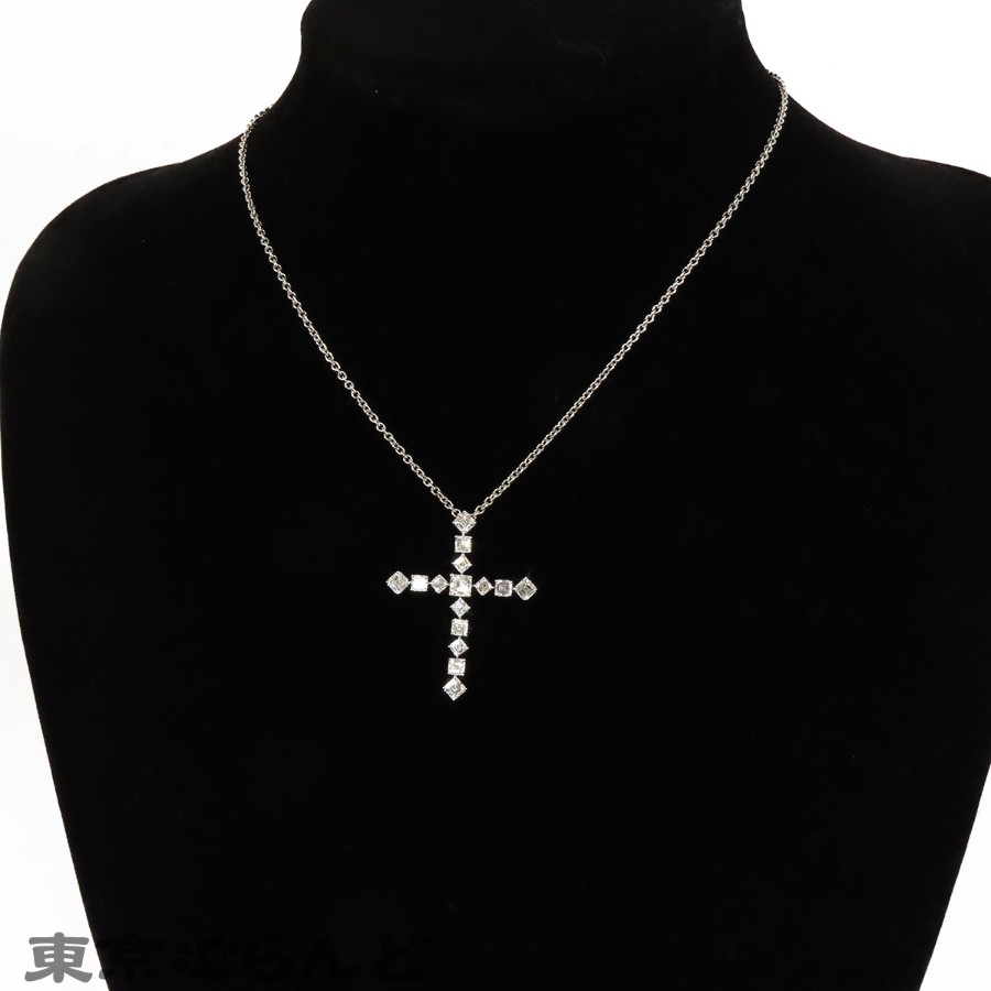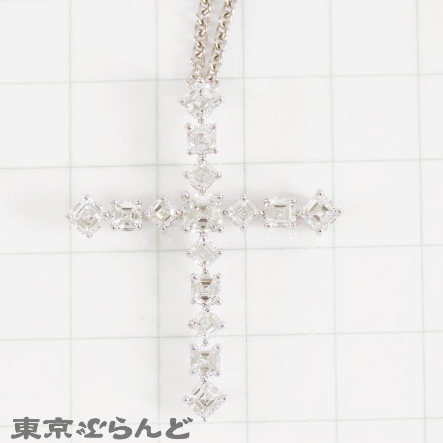 Harry Winston Square Emerald Cut Cross Pendant Pt950 Diamond Necklace (Refurbished)