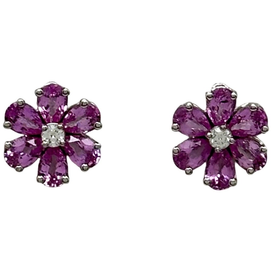 Harry Winston Forget-Me-Not Earrings, Platinum Pt950, Pink Sapphire, Used Jewelry