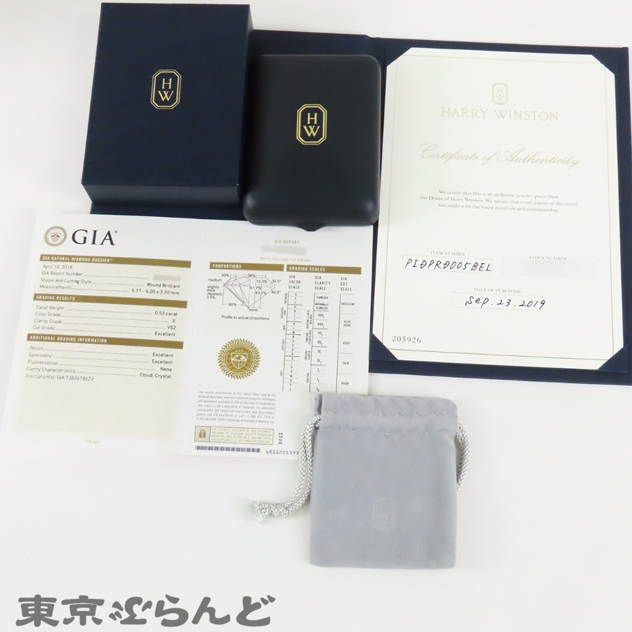 Brand: Harry WinstonProduct Name: Bell Pendant 0.53ct E VS2 3EXOverview: Total Weight: 5.6gModel Number: PIDPRD005BELMain Material: Pt950 x DiamondSize: Top: Approx. W0.8cm x Height: Approx. 0.8cmCarat Weight: 0.53ctColor: EClarity: VS2Cut: EXCELLENTPolish: EXCELLENTSymmetry: EXCELLENTFluorescence: NONEDiamond Shape: Round Brilliant CutNeck Circumference: Approx. 37cm-43.5cmColor: PlatinumAccessories: Box, Dust Bag, Certificate, Case (Damaged)GIA ReportItem Condition: 9.5 pointsAdditional Information: This item has been professionally polished at a jewelry store for this listing.*There are some minor scratches that could not be completely polished.*Due to changes in Harry Winston's regulations, after-sales maintenance by the manufacturer is not available to anyone other than the person who purchased the item from an authorized retailer.