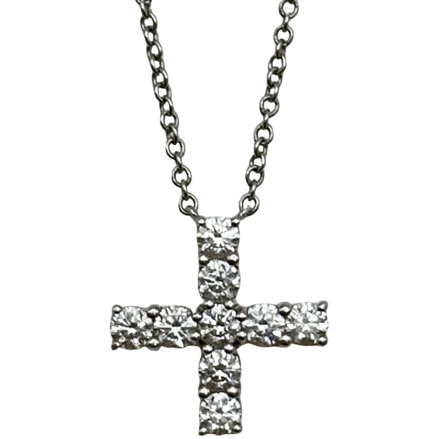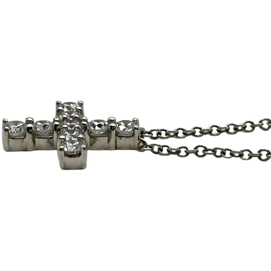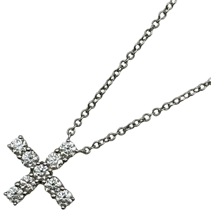 Harry Winston Mini Cross Diamond Necklace, Platinum Pt950, 9 Diamonds, Pre-owned Jewelry, P0061377