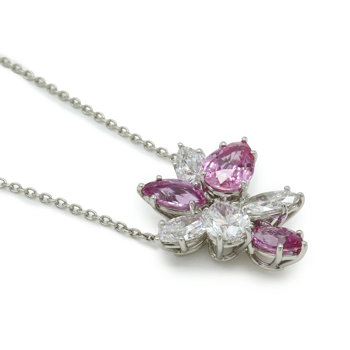厳選されたピンクサファイアとダイヤモンドが丁寧にセッティングされたラグジュアリーなネックレス。