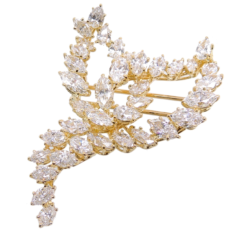 Brand Name: HARRY WINSTONProduct Name: 750YG Diamond Brooch 750 Yellow GoldSize: Approx. 53.0mm x 35.0mmSize Remarks: Total Weight: 12.0g*Actual measurementsMaterial: 750 Yellow GoldAccessories: Storage bagCondition: Used: ABrooch…This item is in excellent condition with no notable scratches. It is a luxurious diamond brooch adorned with beautifully dazzling marquise-cut diamonds.37 diamonds, approximately 15ct.*Please note that due to the WINSTON engraving, manufacturer repairs are not possible.Stone Type: Diamond*Due to changes in Harry Winston's regulations, manufacturer repairs are not accepted. The actual product color may differ from what you see on your screen depending on your device and display settings.