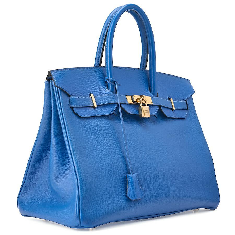 HERMES Birkin 35 Handbag, Courchevel Leather, Blue France (Gold Hardware), Women's Bag, Brand Name [Pre-owned]
