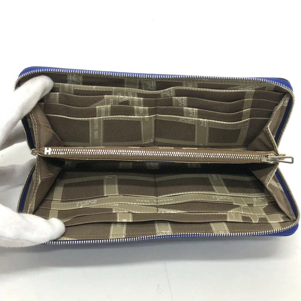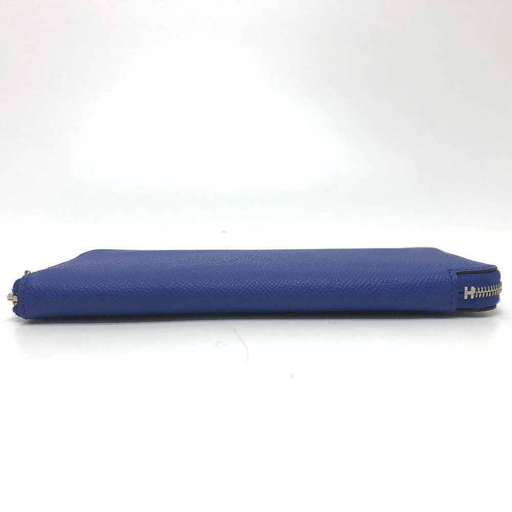 Pre-owned HERMES Azap Long Silk-in Zip-Around Long Wallet, Epsom Leather, Women's, Blue, France