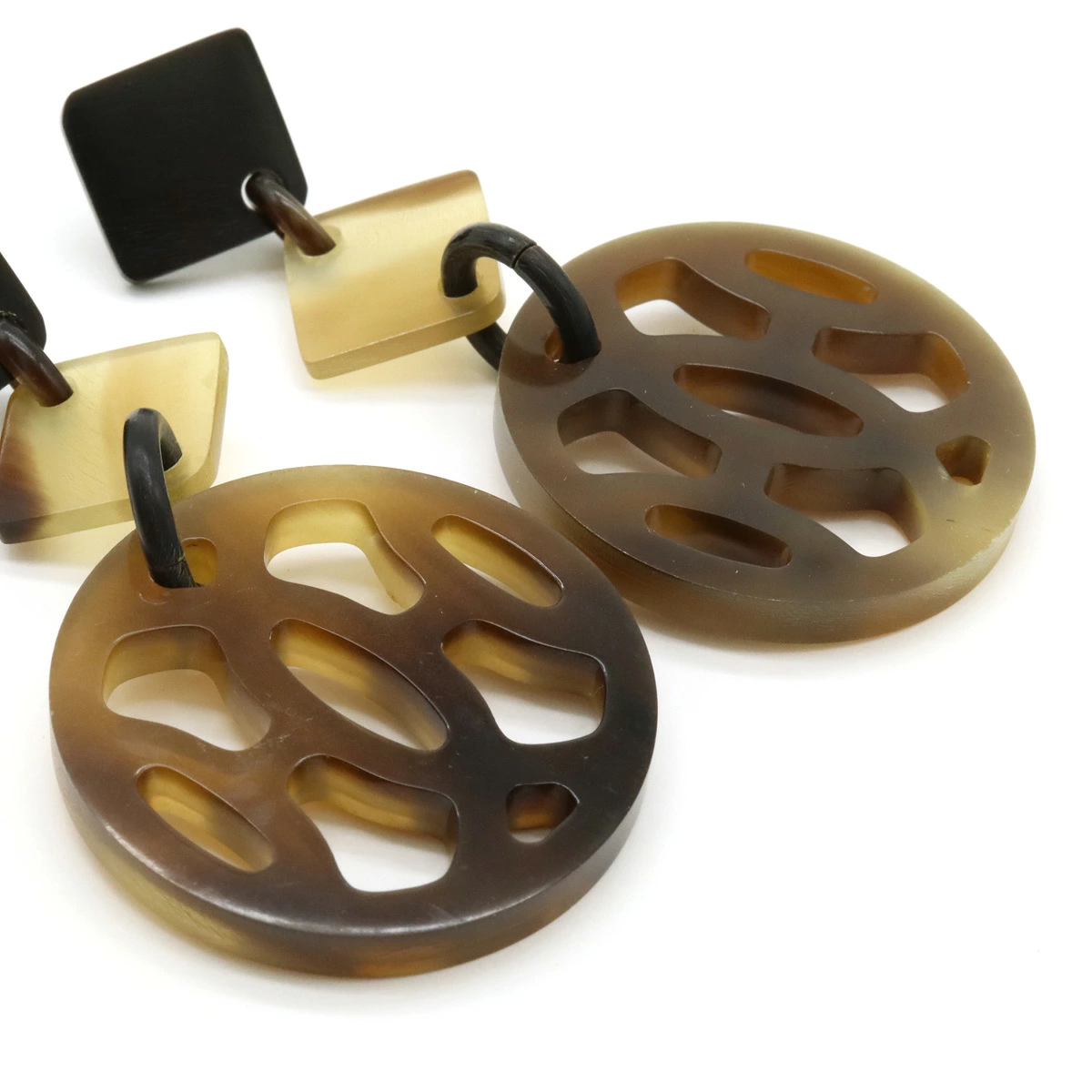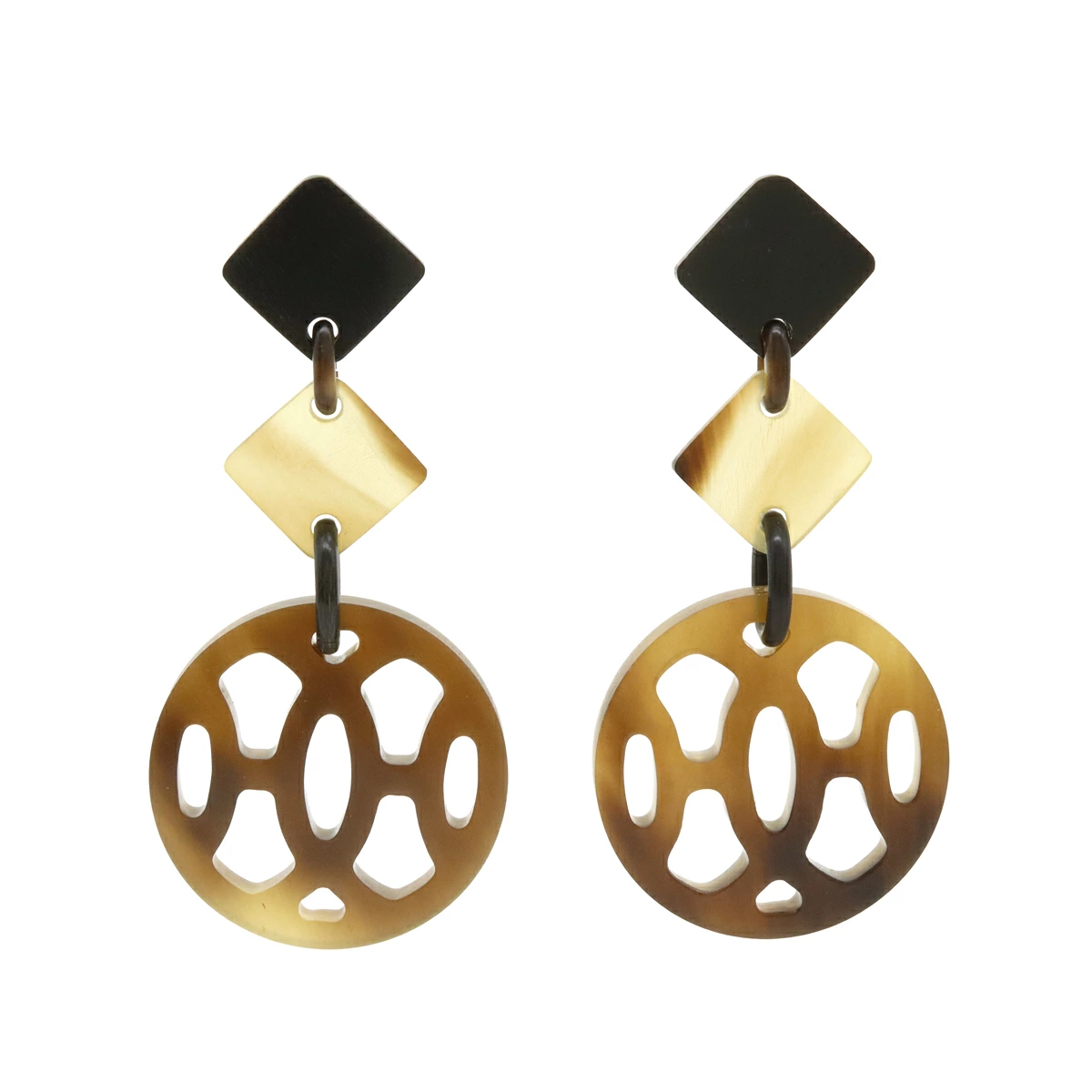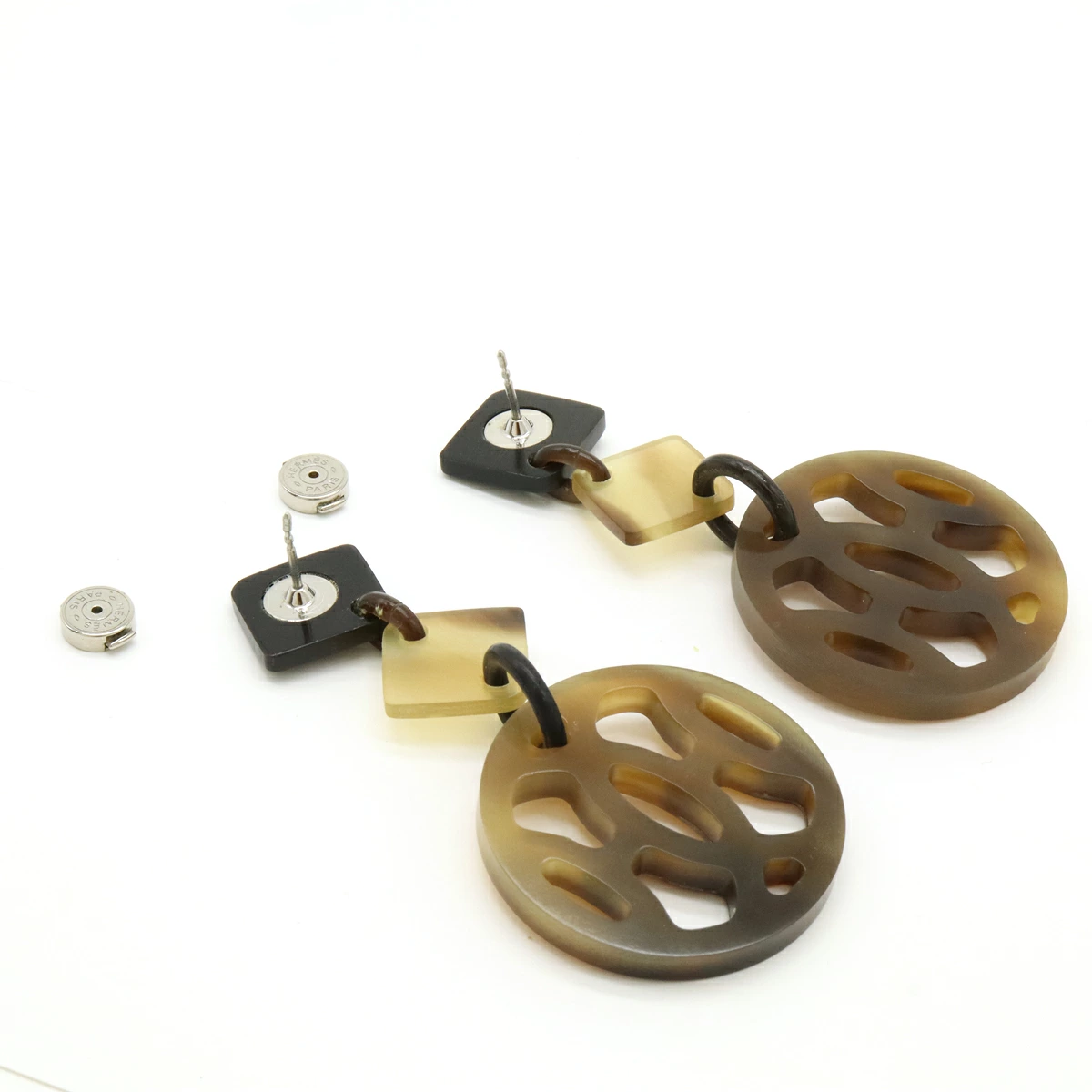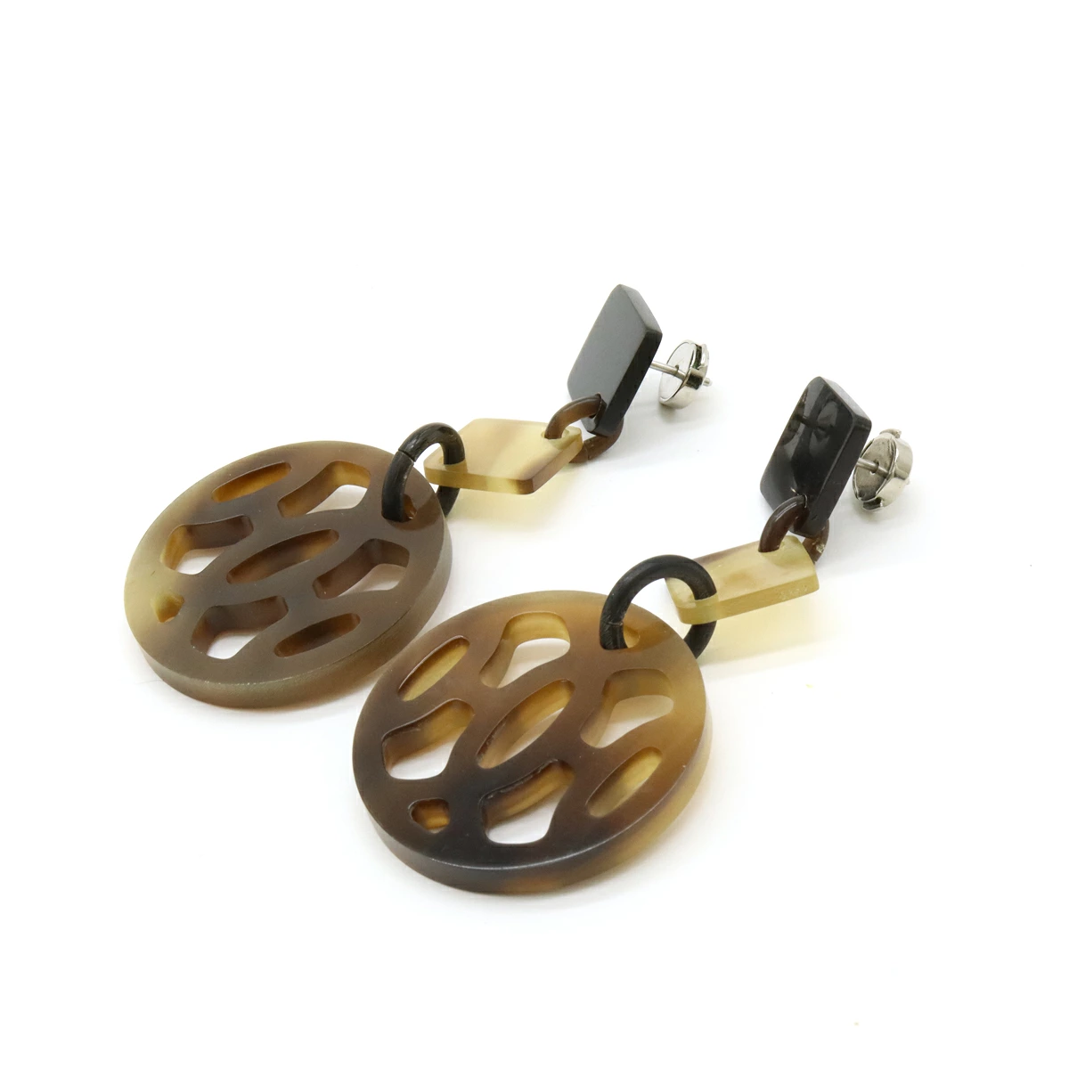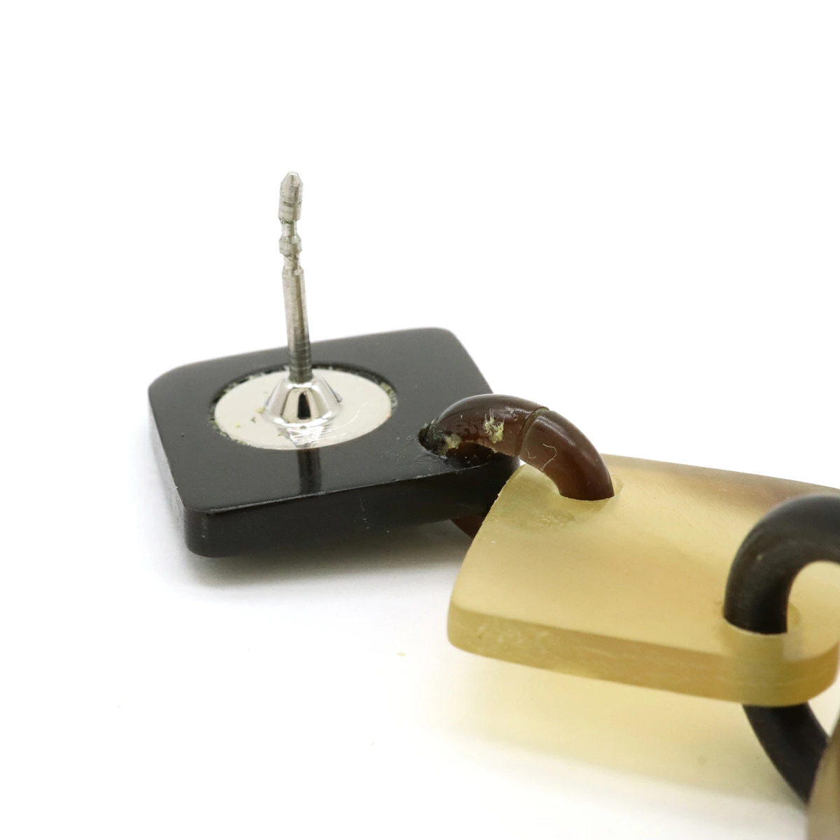 天然素材のためひとつひとつの風合いが異なることでも人気のバッファローホーンを使用したピアス。
