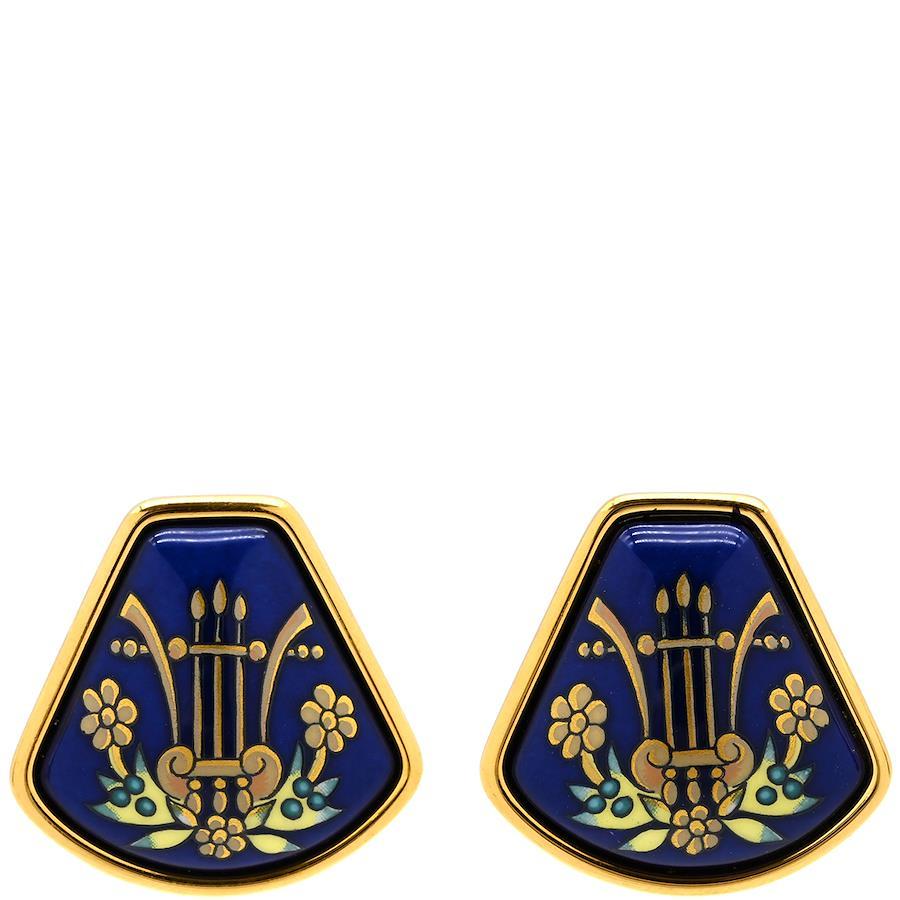 Hermès Enameled Earrings, Navy Blue, Enameled GP, Navy and Gold, Gold Hardware - A classic, popular, excellent condition.