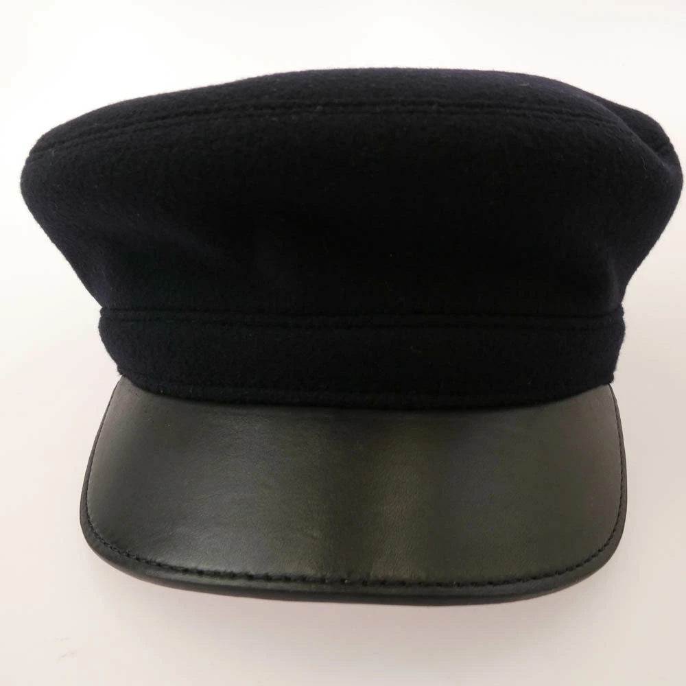 | 商品名 | ウール ツバ部分ラムレザー切替 Hロゴ刺繍 キャスケット 帽子 |