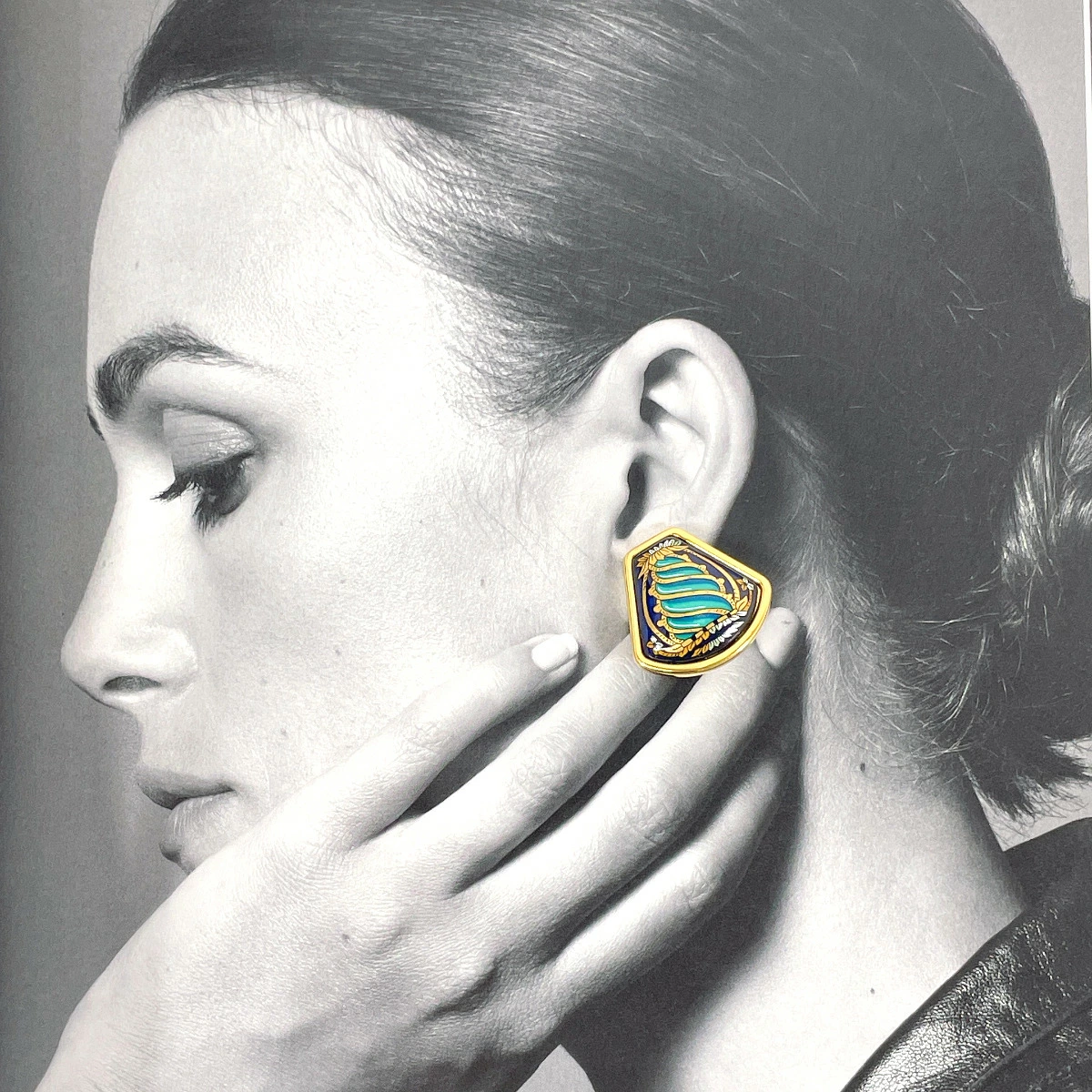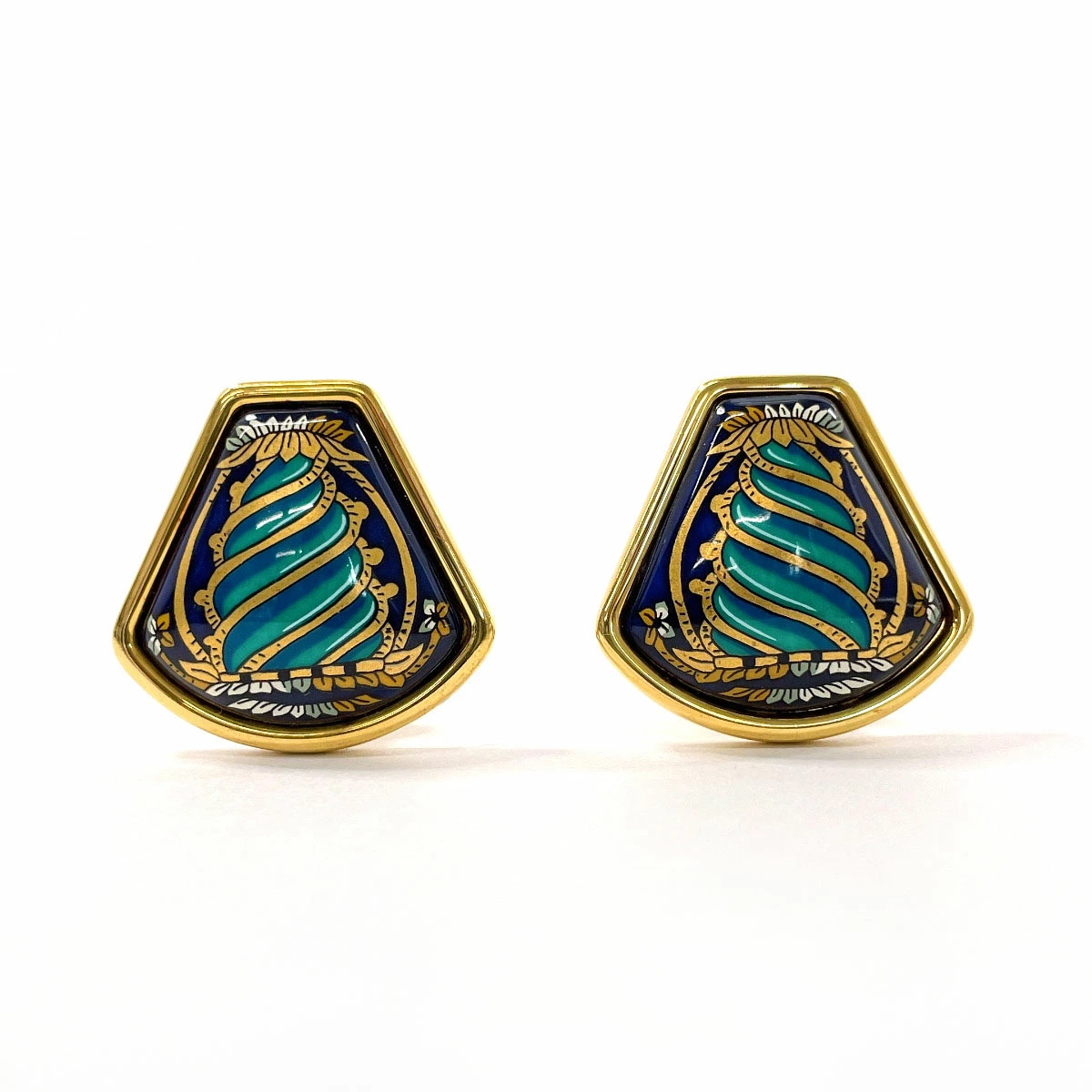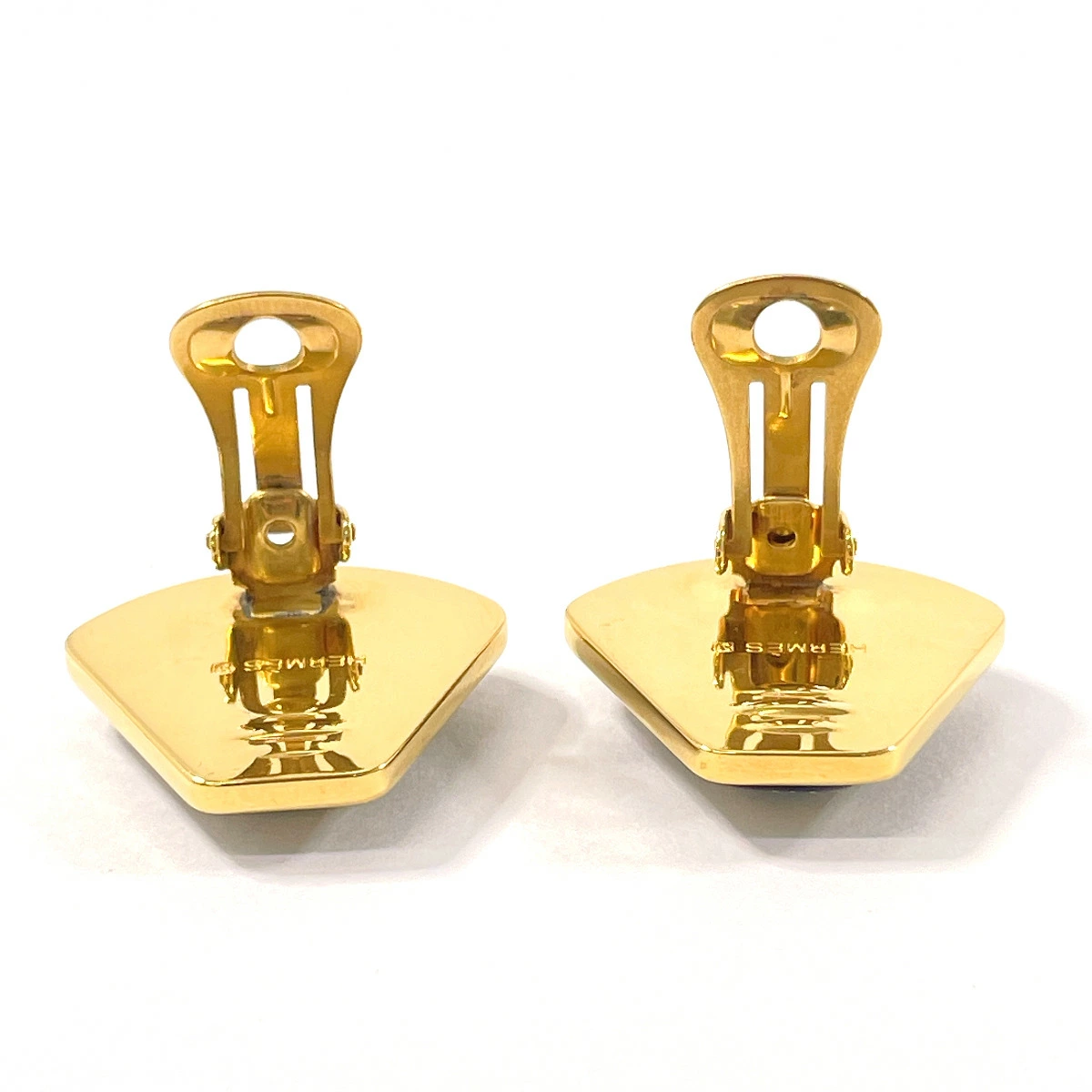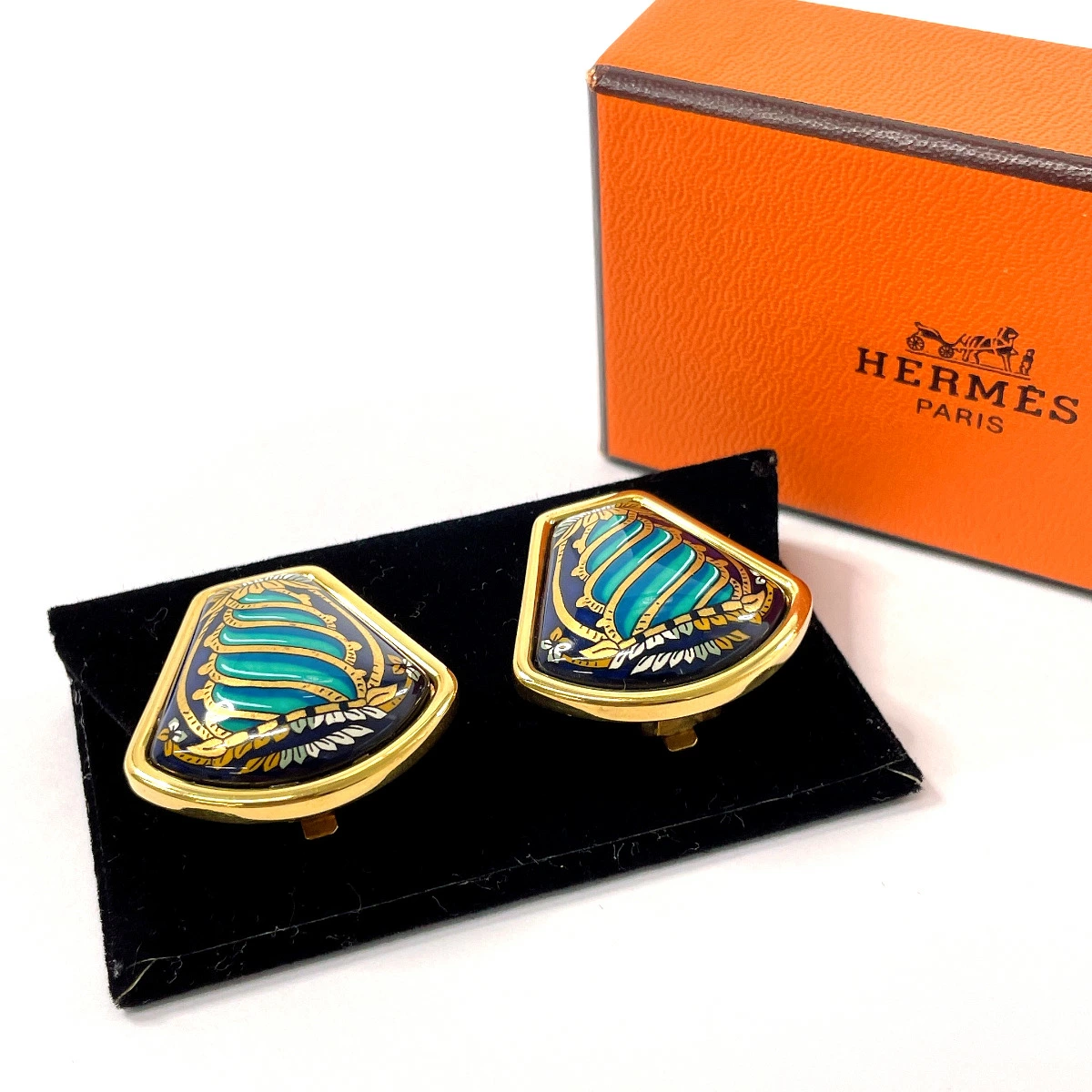HERMES enamel cloisonné earrings, gold, pre-owned, for women