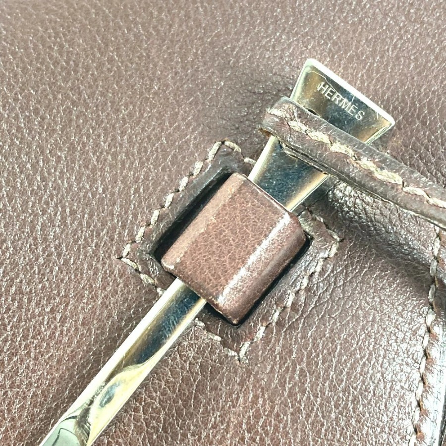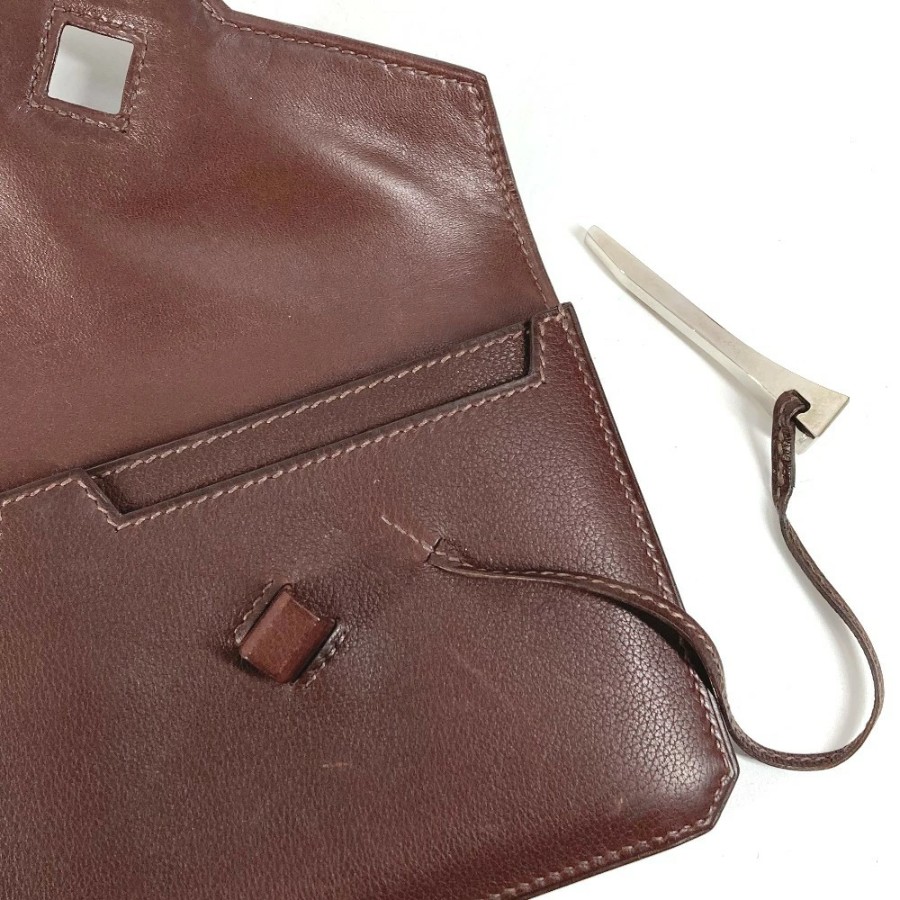 HERMES Envelope Bag, Flap Pouch, Second Bag, Clutch Bag, Leather, Unisex, Brown [Used]