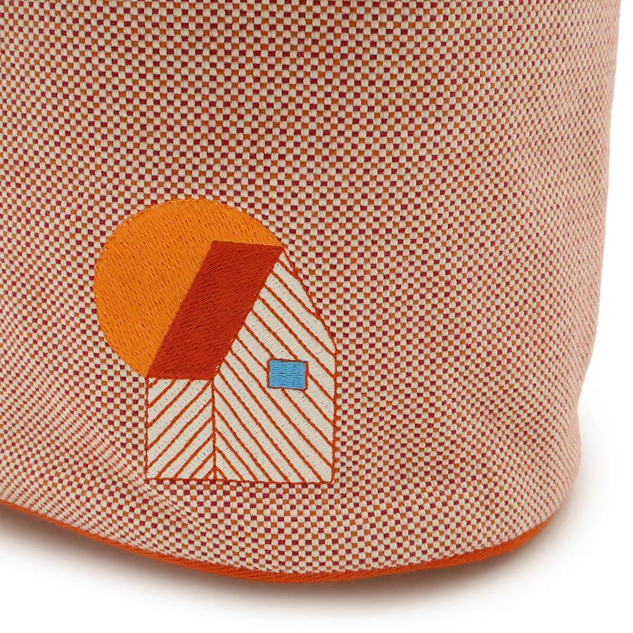 子どものためのコレクション《カバン》では、ナイジェル・ピークならではのグラフィカルでカラフルな筆致が、小屋の構造やフレーム、色の対比をユーモラスに描き出しています。