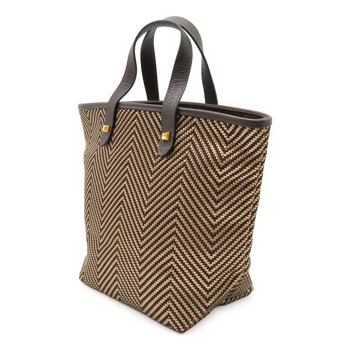 HERMES Cabas Chennai PM Tote Bag, Handbag, Braided Leather, Dark Brown with Gold Hardware, □M Stamp