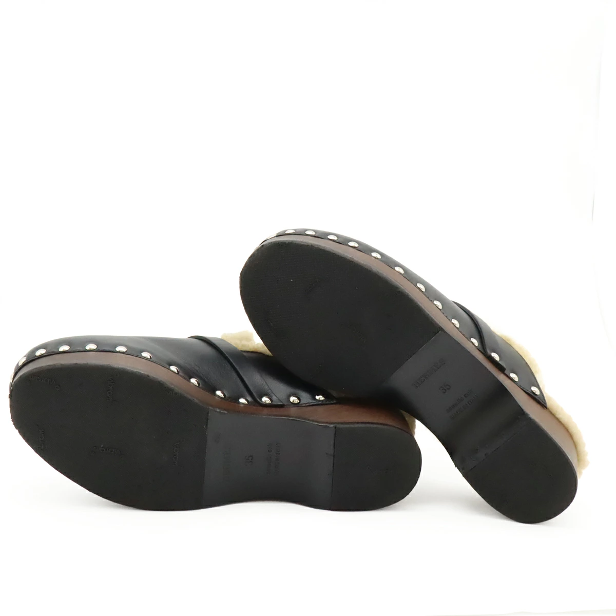 正面にケリーバックルが付いた、エレガントなサボサンダルでございます。