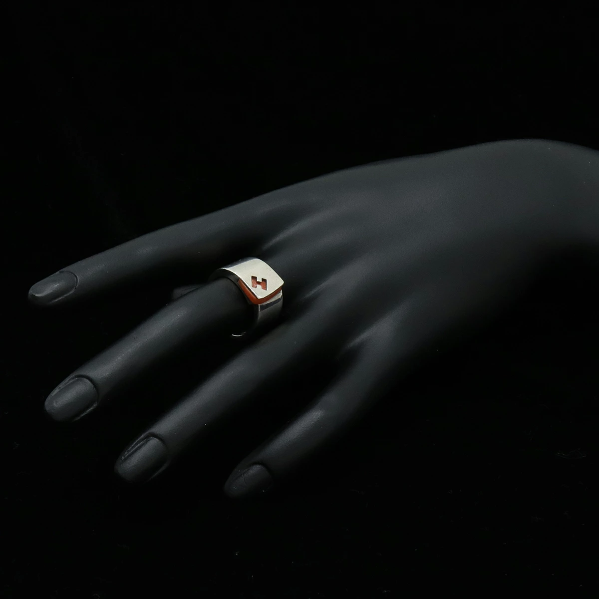 重厚感のあるデザインが存在感抜群のオシャレなシルバーリングでございます。
