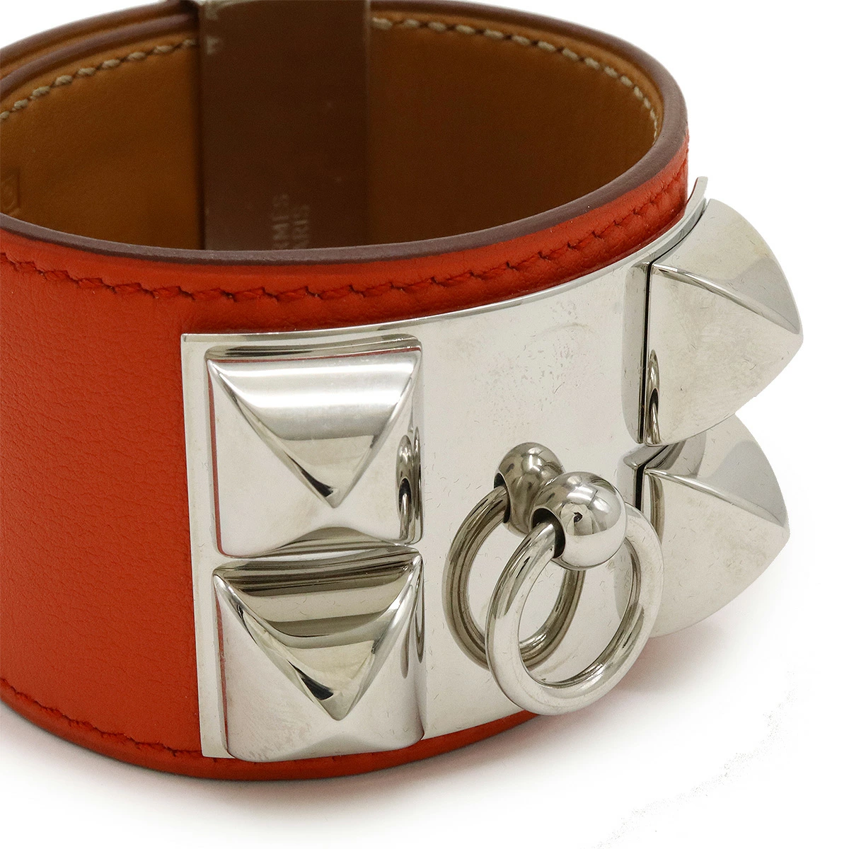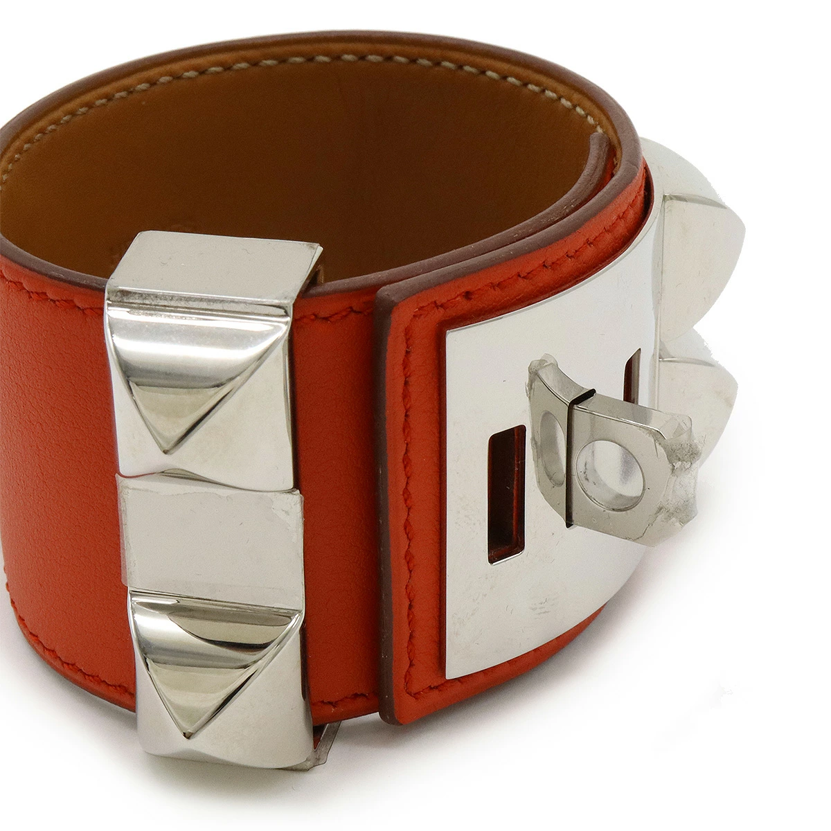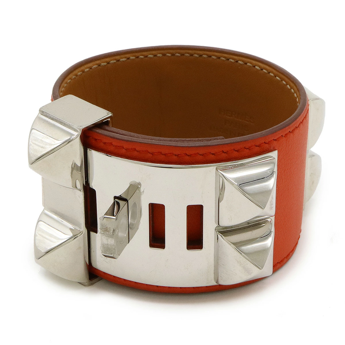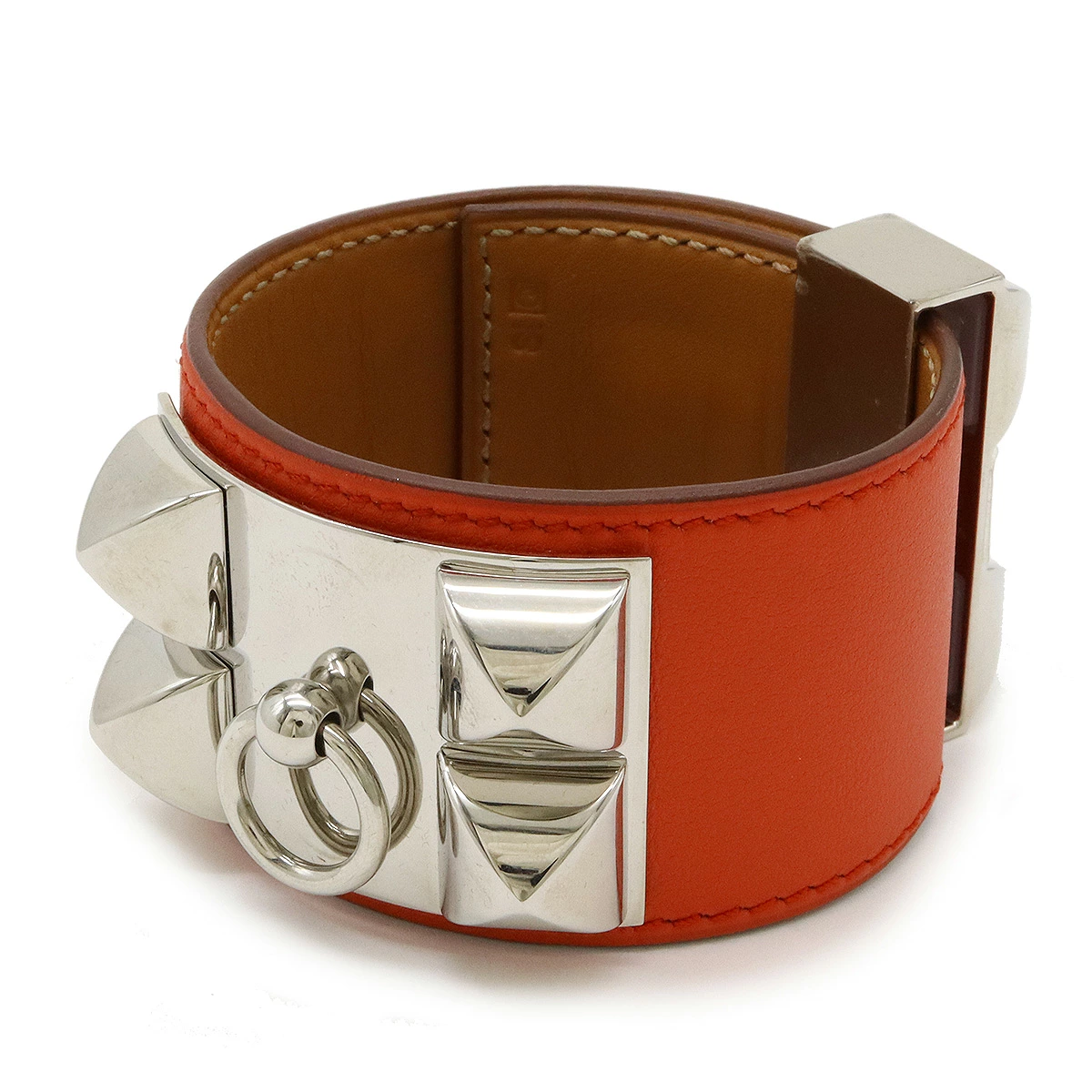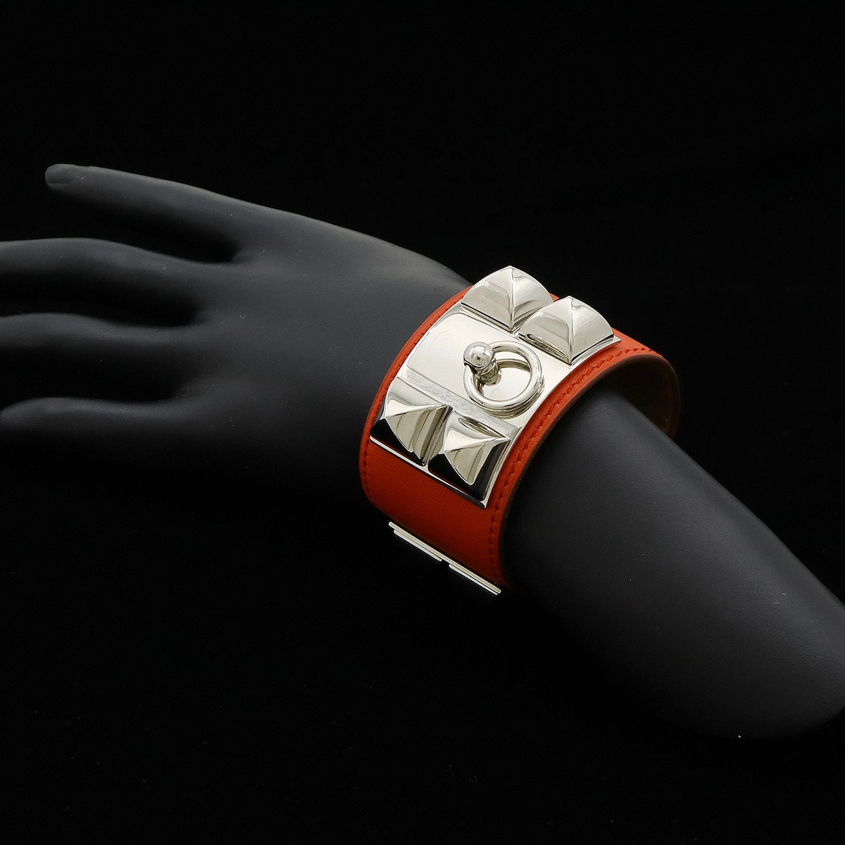 ワイドな幅と大きめのスタッズがインパクト抜群で重厚感のあるバングル。