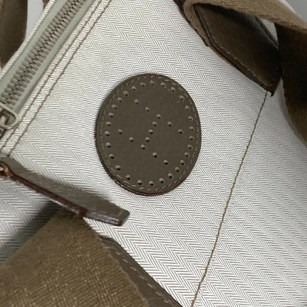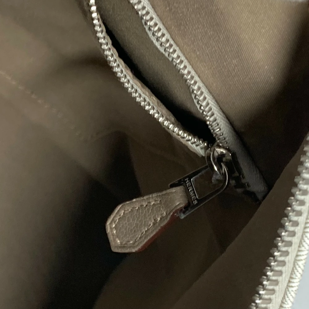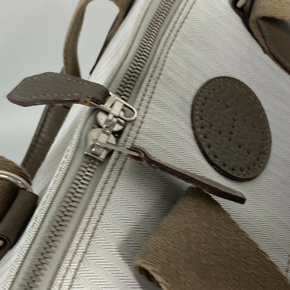 Pre-owned HERMES Sac de Golf 40 bag, golf bag, handbag, travel bag, Boston bag, Toile Chevron leather, unisex, Etoupe, beige.