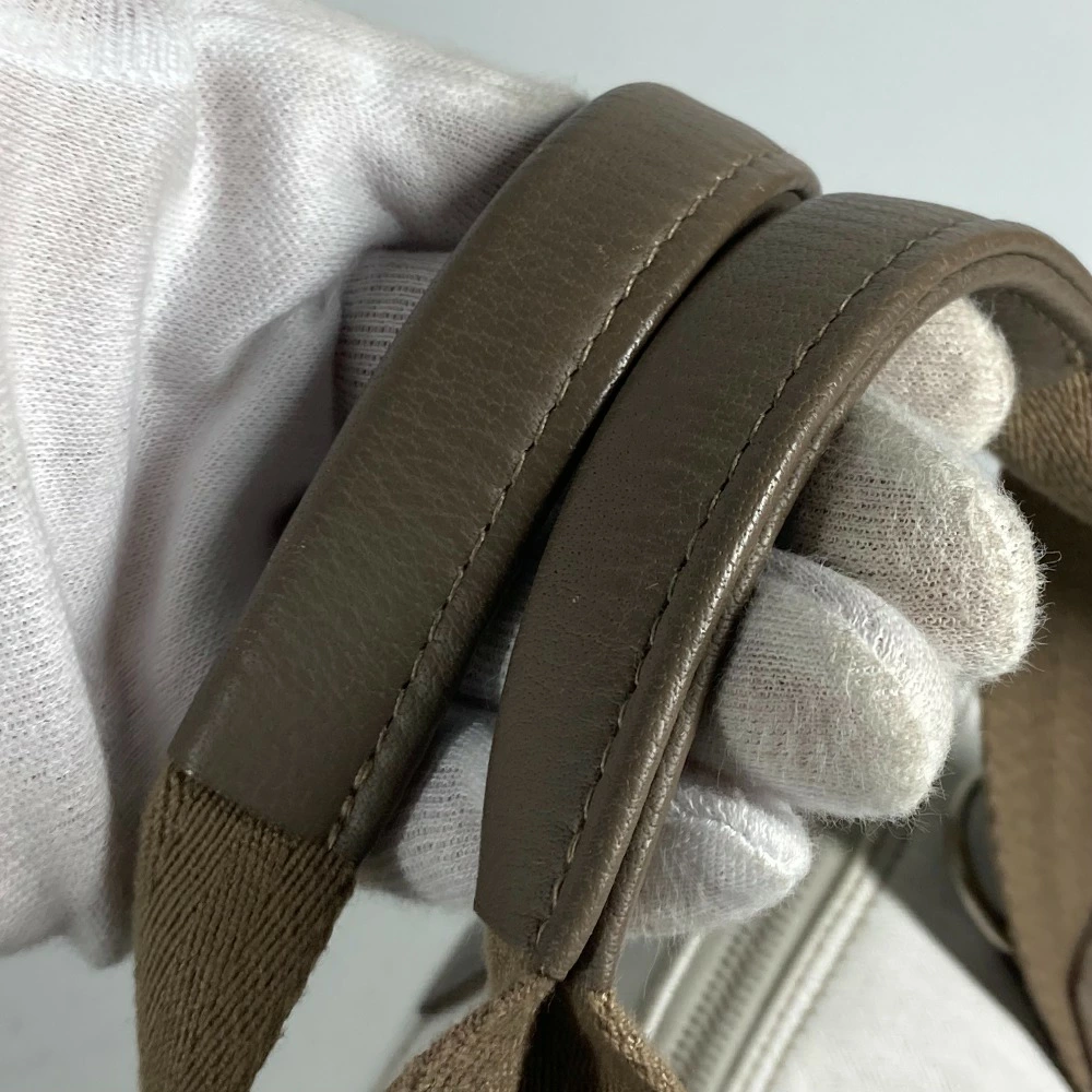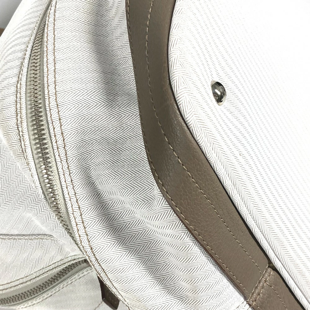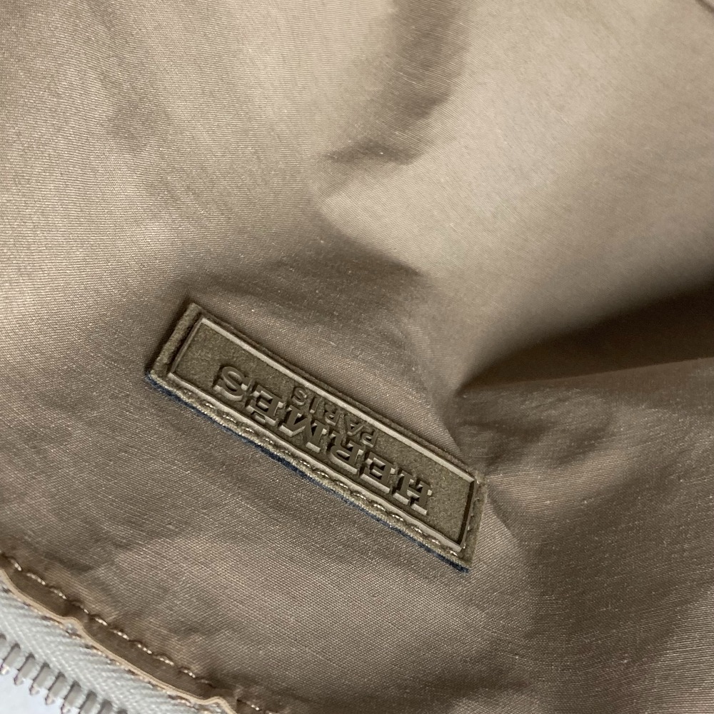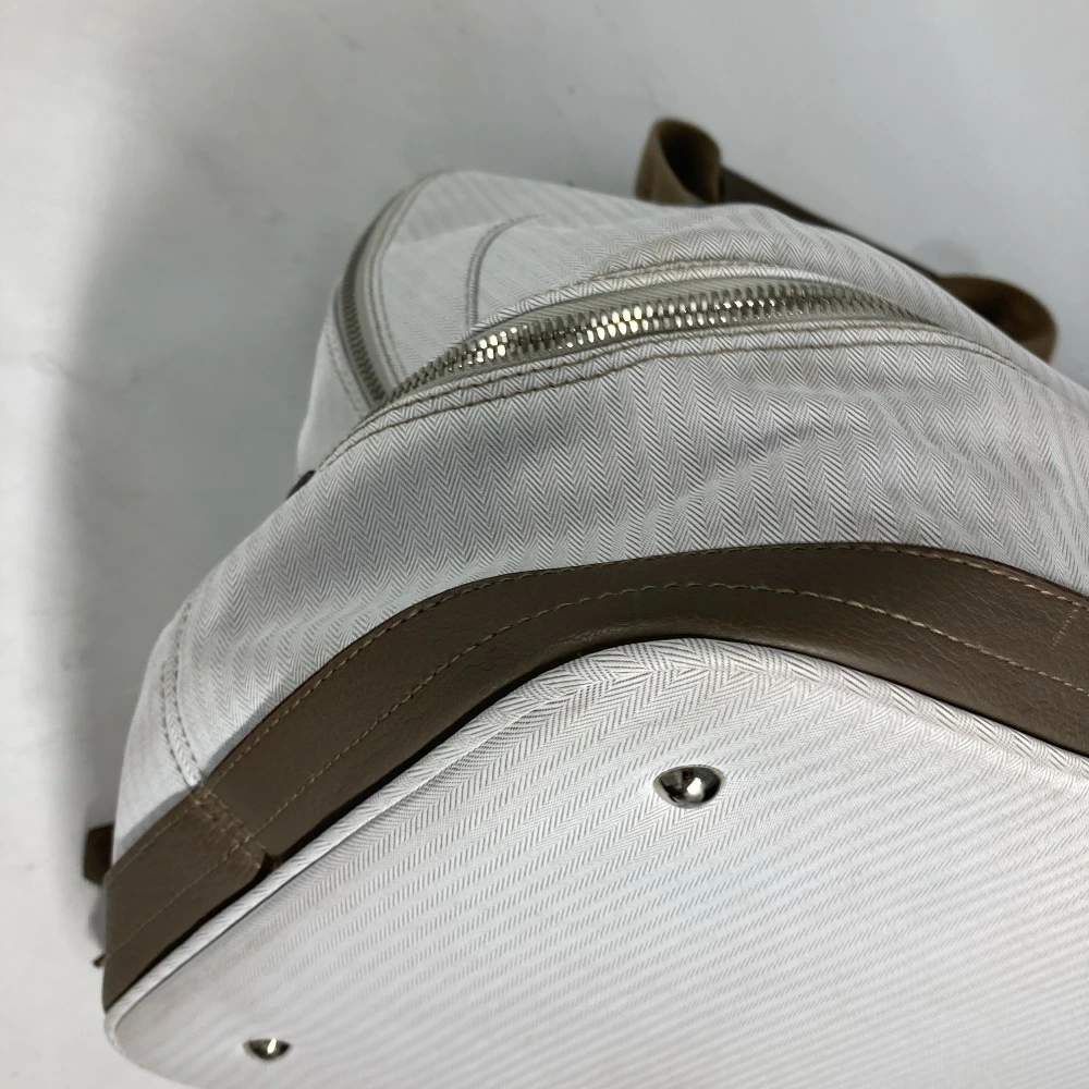 Pre-owned HERMES Sac de Golf 40 bag, golf bag, handbag, travel bag, Boston bag, Toile Chevron leather, unisex, Etoupe, beige.