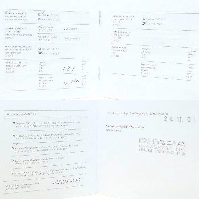 | | 重量 | 9.1g | | 付属品 | 保存箱、クロス 、保証書 (2024年発行) | | 備考 | ダイヤモンド 0.84ct