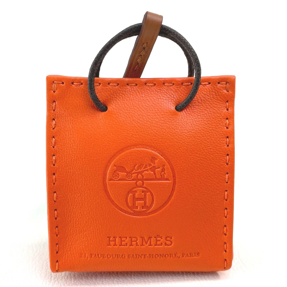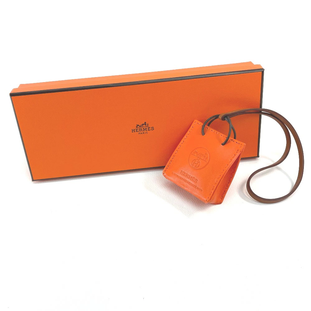 HERMES Shopper Sac Orange Bag Strap Keychain Charm by Anjou Milo Women's Orange Unused [Pre-owned]