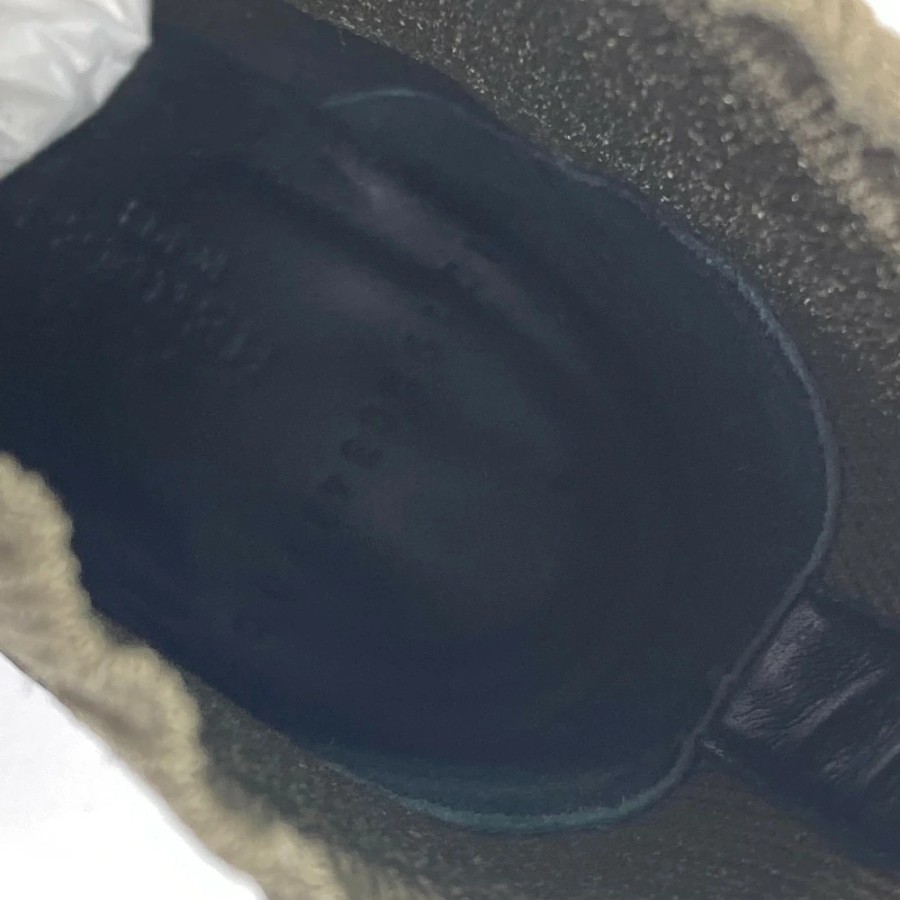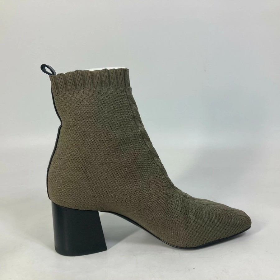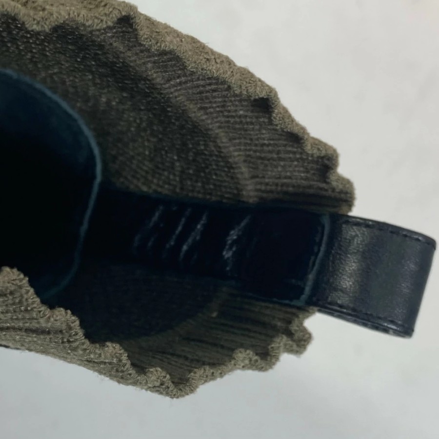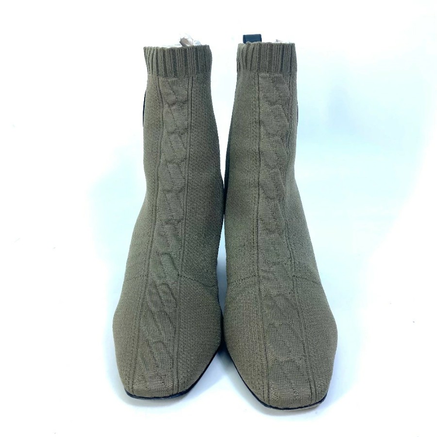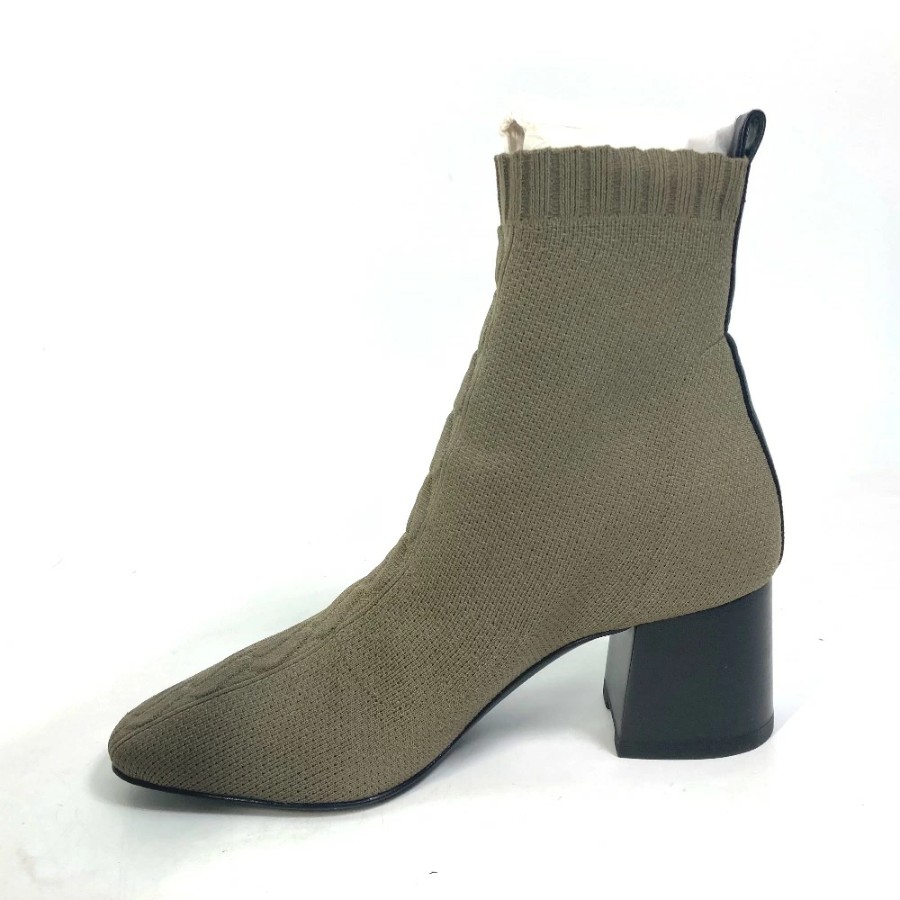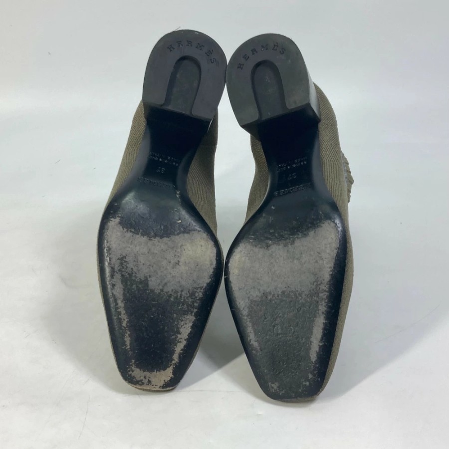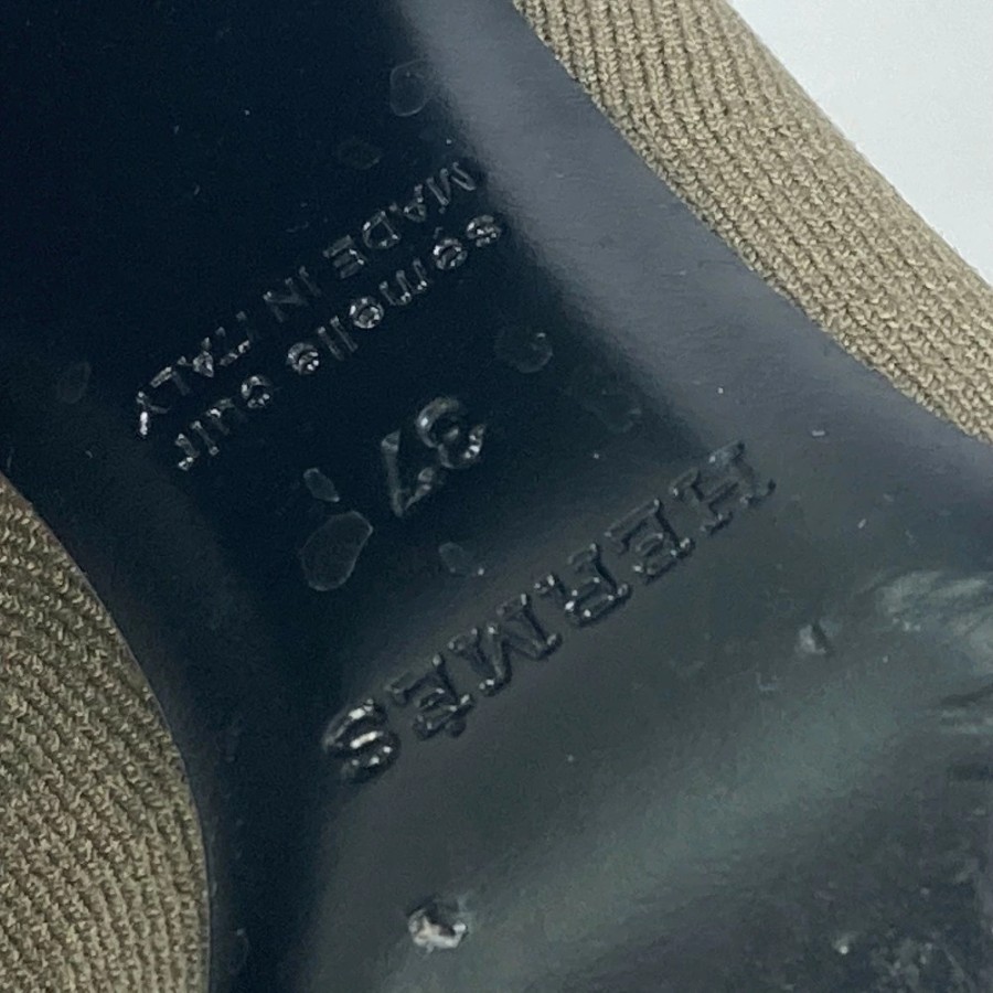 HERMES Volvert Short Boots, Size 60, with H-logo, Knit/Leather, Women's, Khaki [Used]