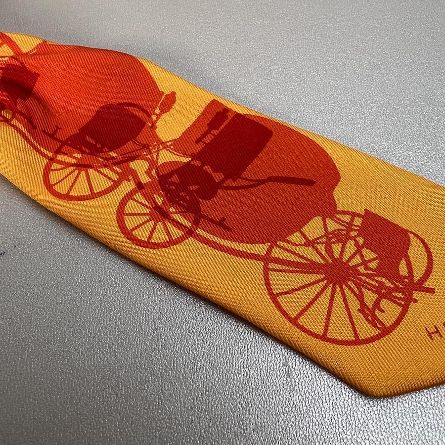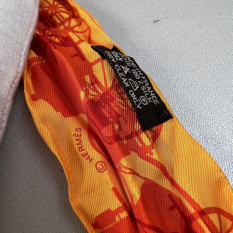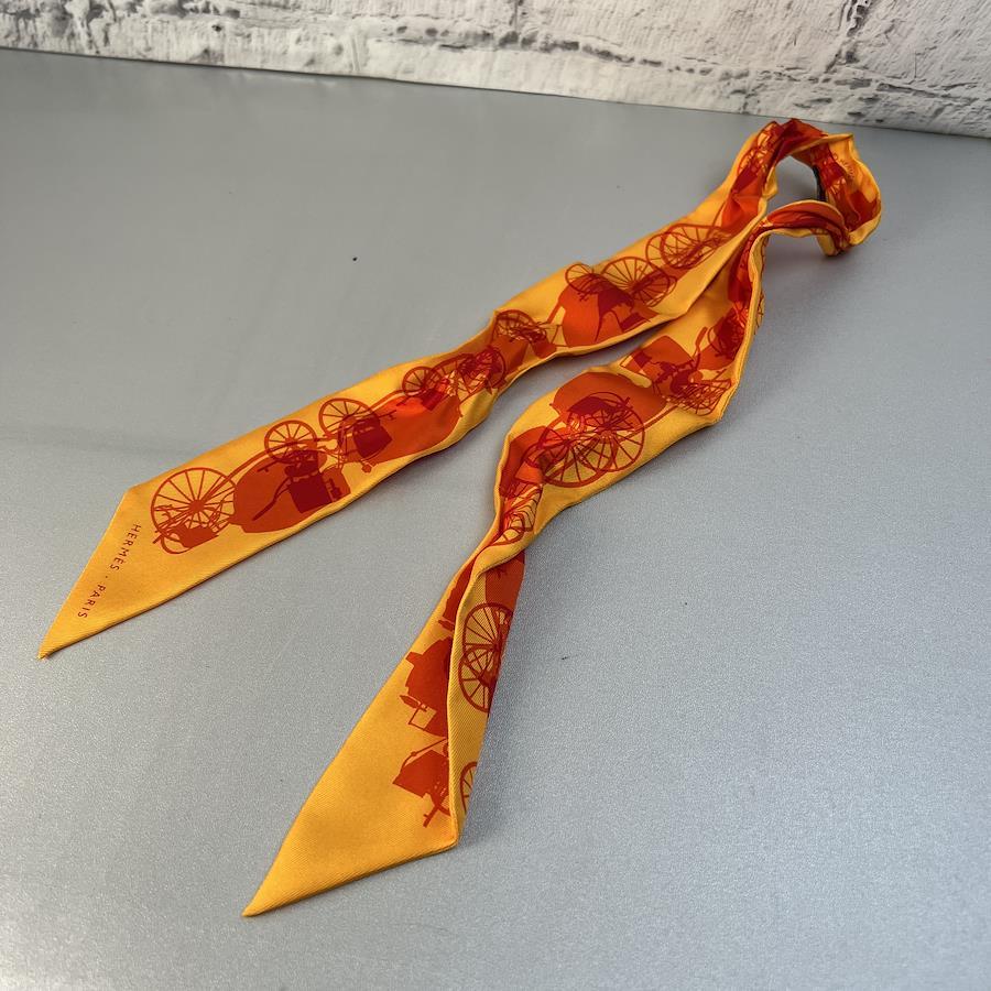 【アイテム】良品 HERMES エルメス タグ付き 馬車 シルク ツイリー オレンジ A-11506