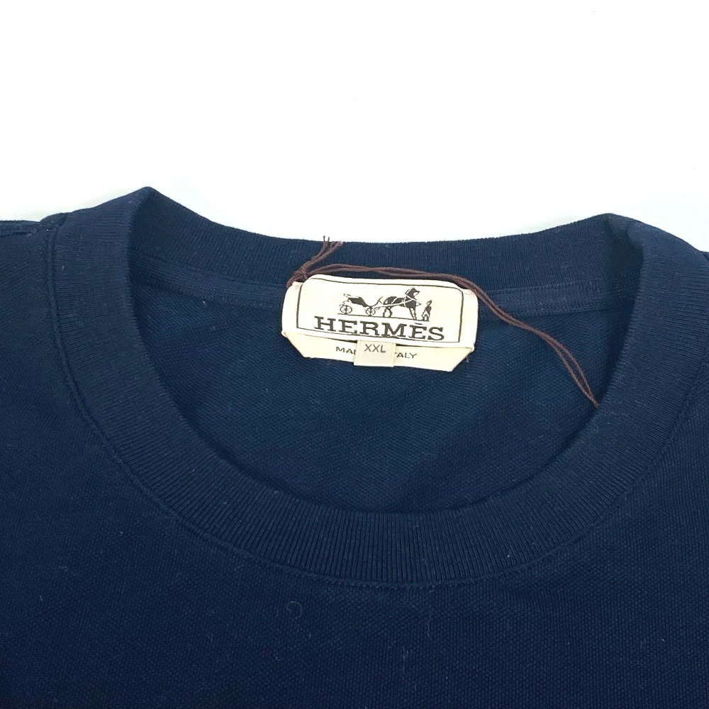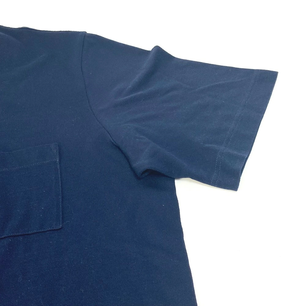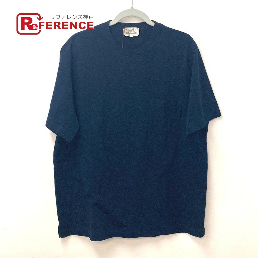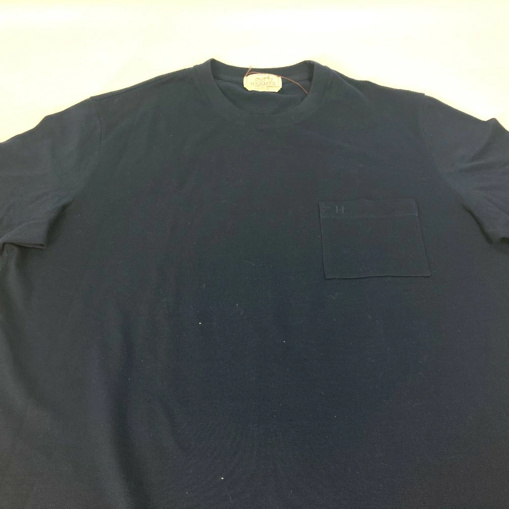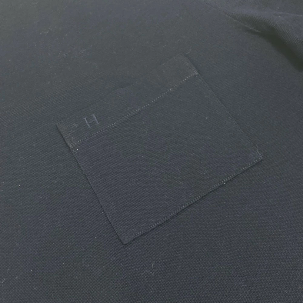 Pre-owned Hermès Men's Navy Short Sleeve T-Shirt with H Embroidery and Pocket, Cotton.
