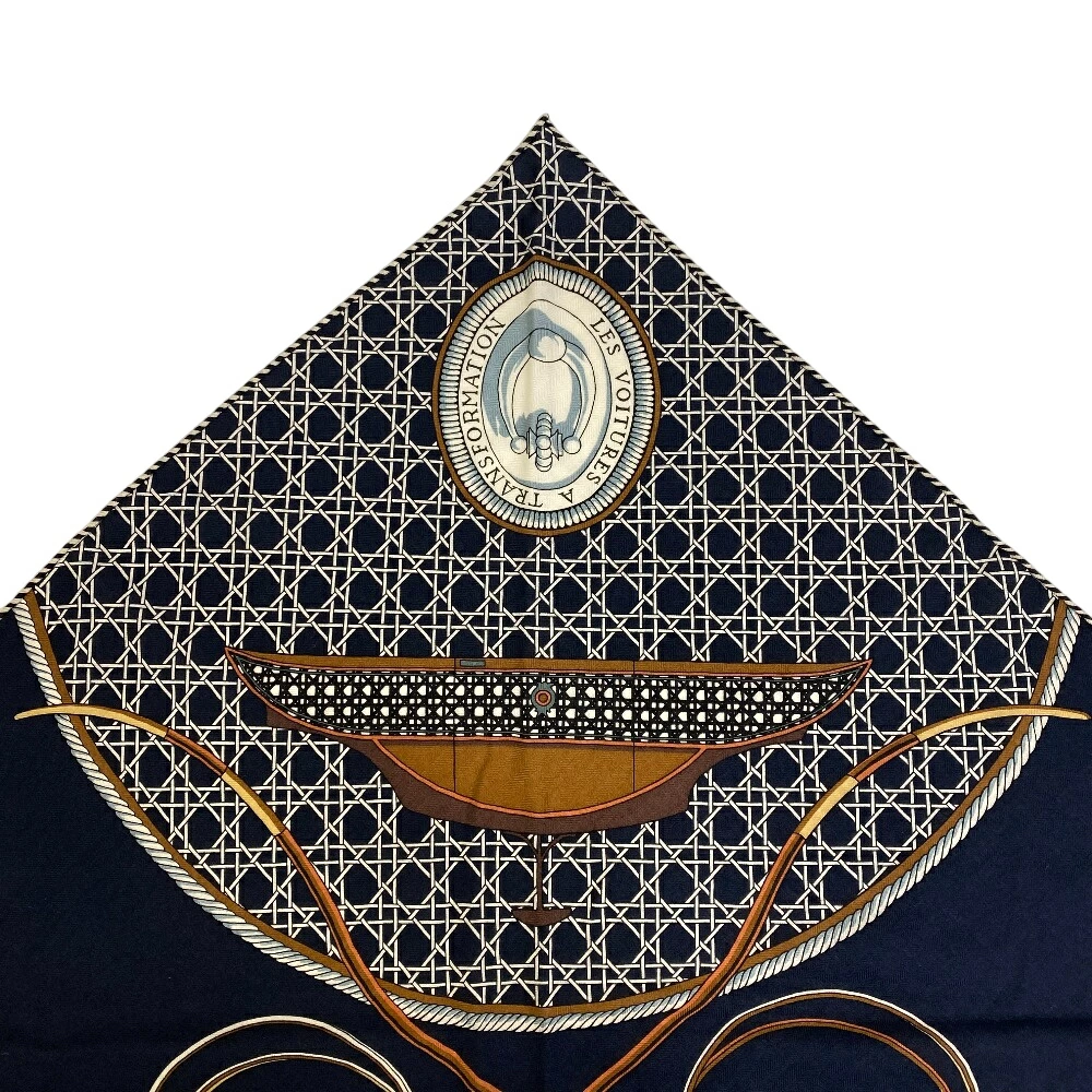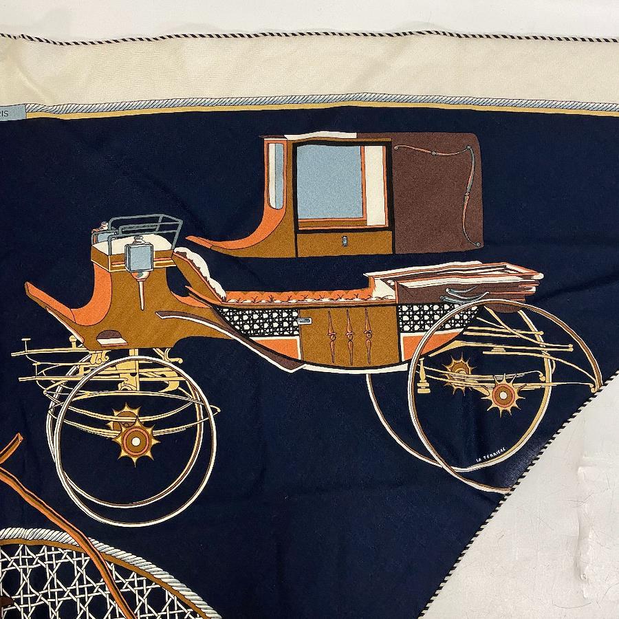 | 商品名 | HERMES/エルメス トライアングルジェアンLES VOITURES TRANSFORMATION 折り畳み式幌馬車 スカーフ ブラック |