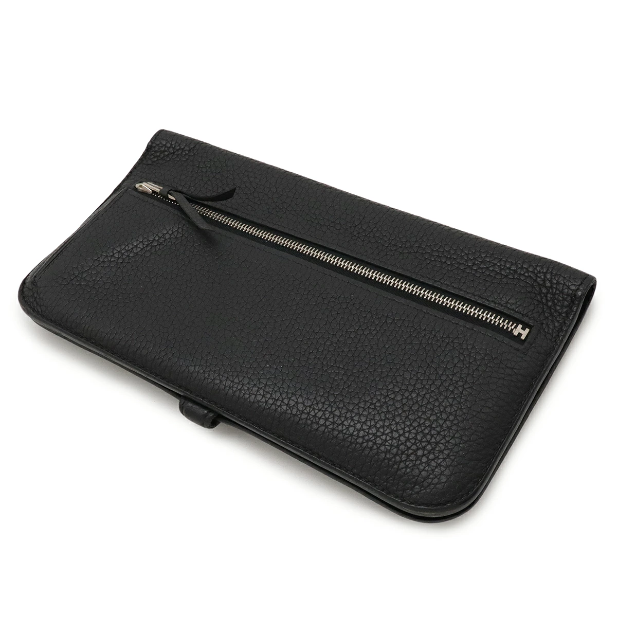上質でなめらかなレザーにステッチデザインと金具のアクセントが効いたエルメス定番の2つ折長財布。