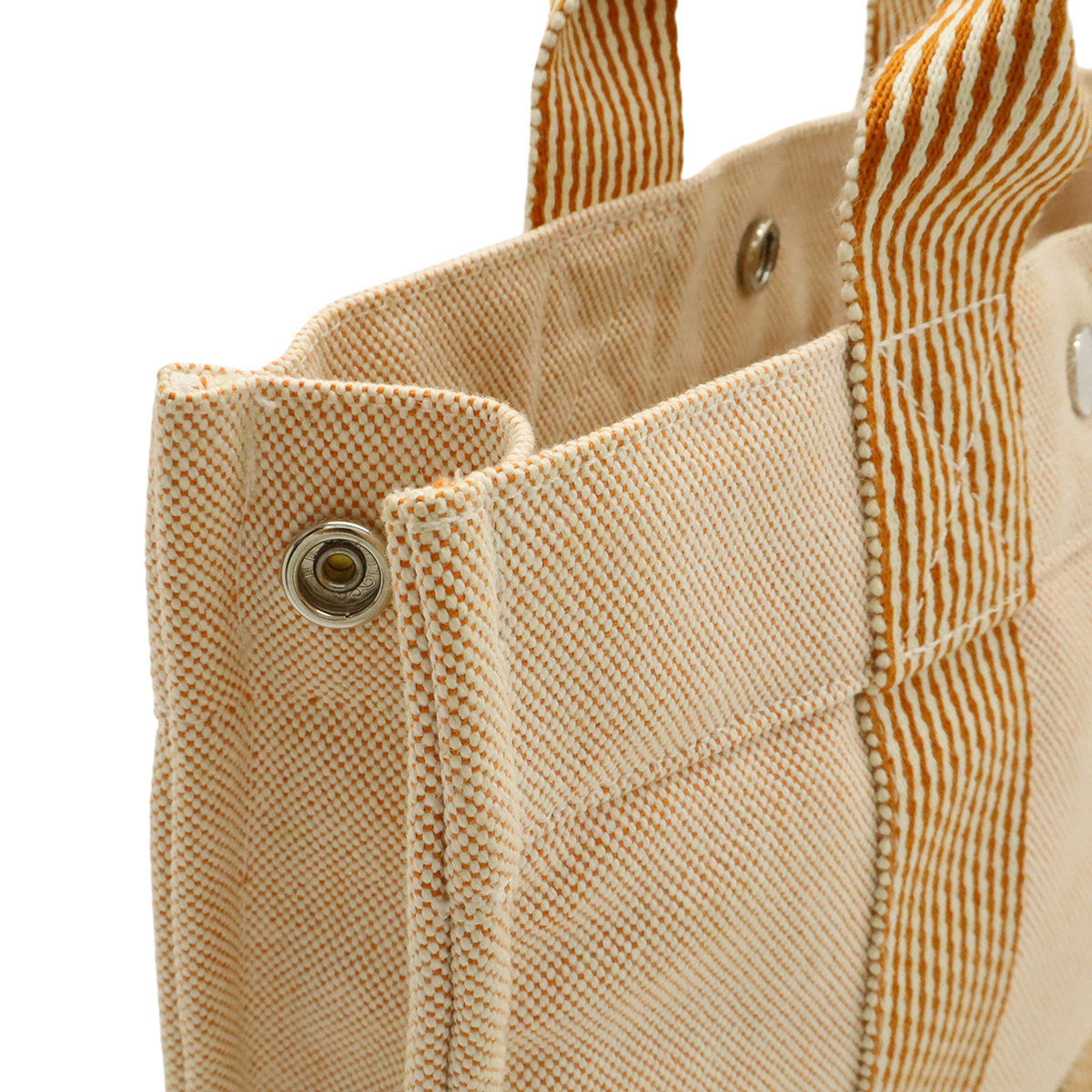 【コンディション】[外側]フチ若干の薄汚れ[内側]目立つダメージなし[ハンドル]毛羽立ち[金具]若干のスレ
