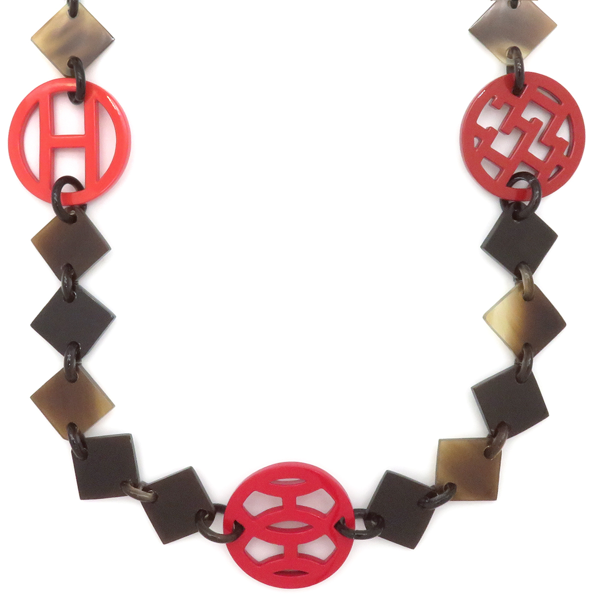 Hermès Ava HAVA Necklace in Buffalo Horn, Brown, and Red