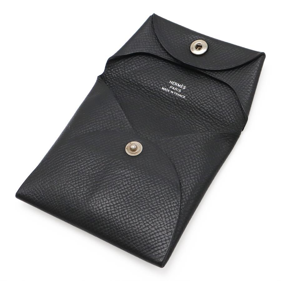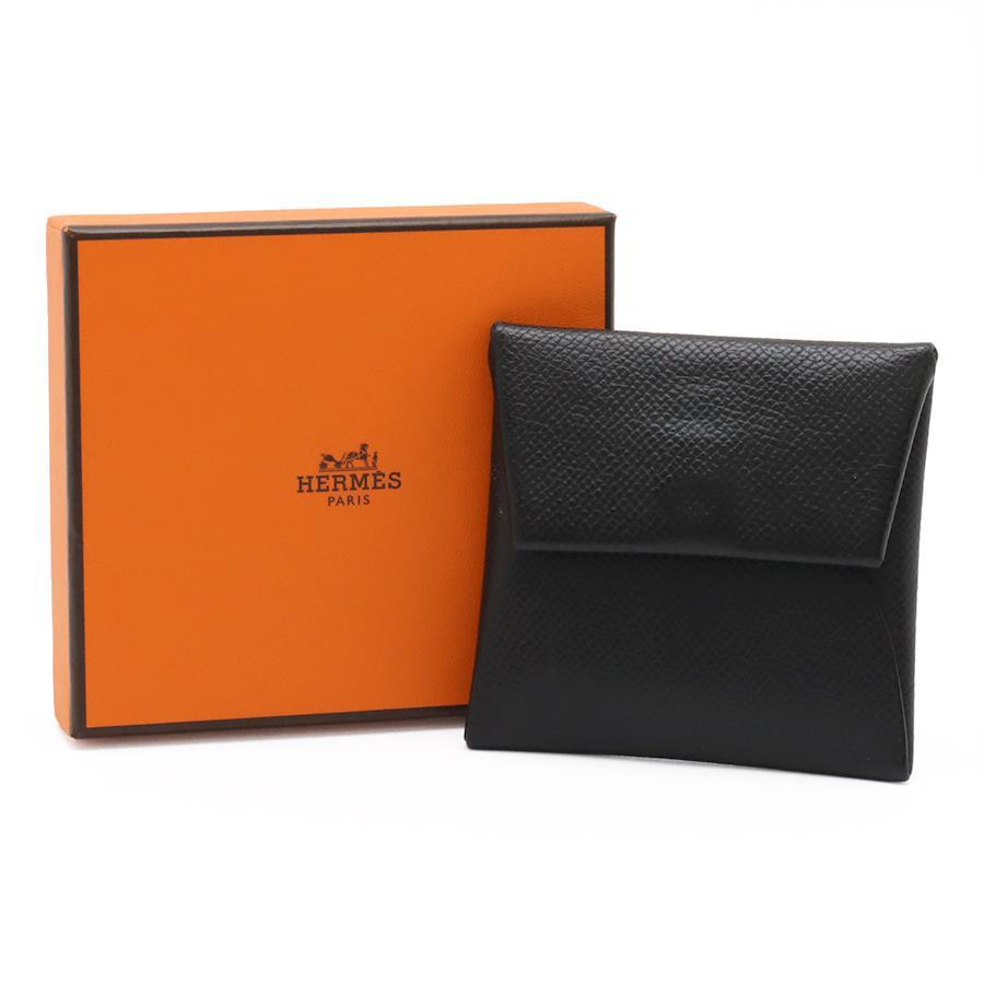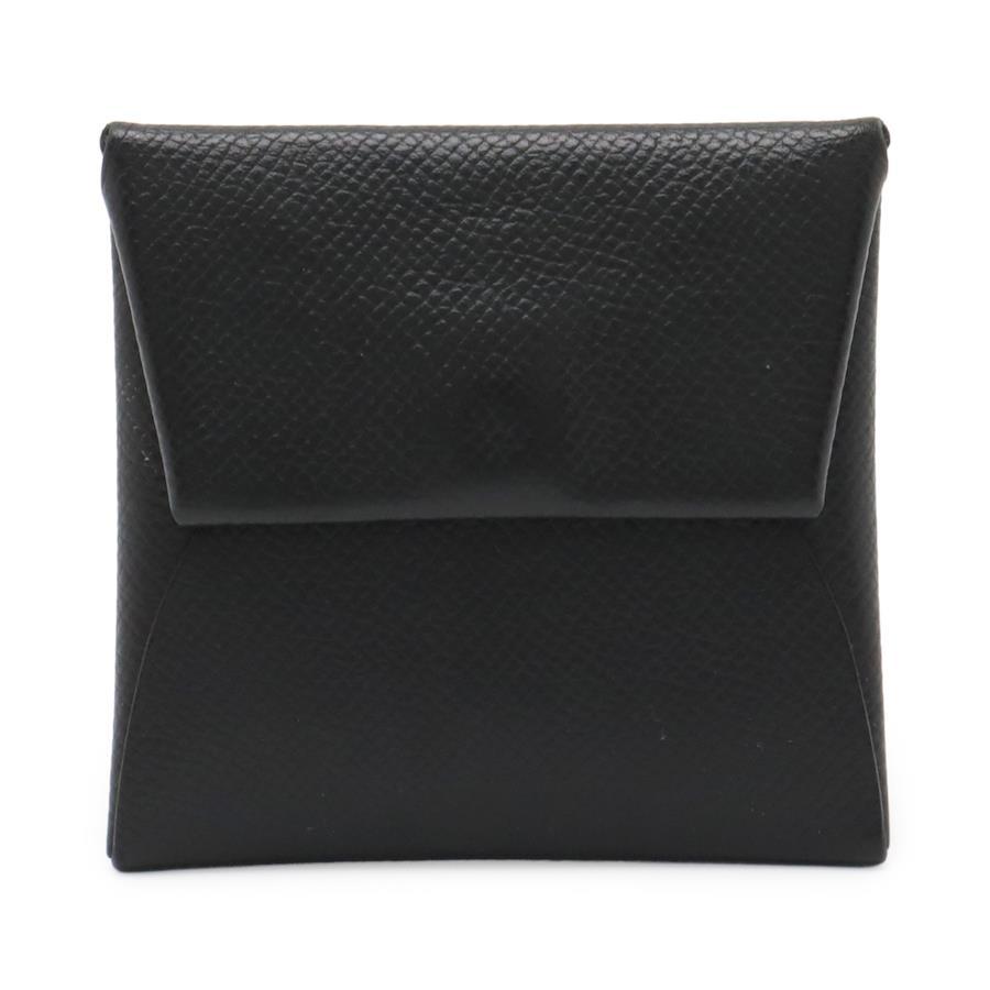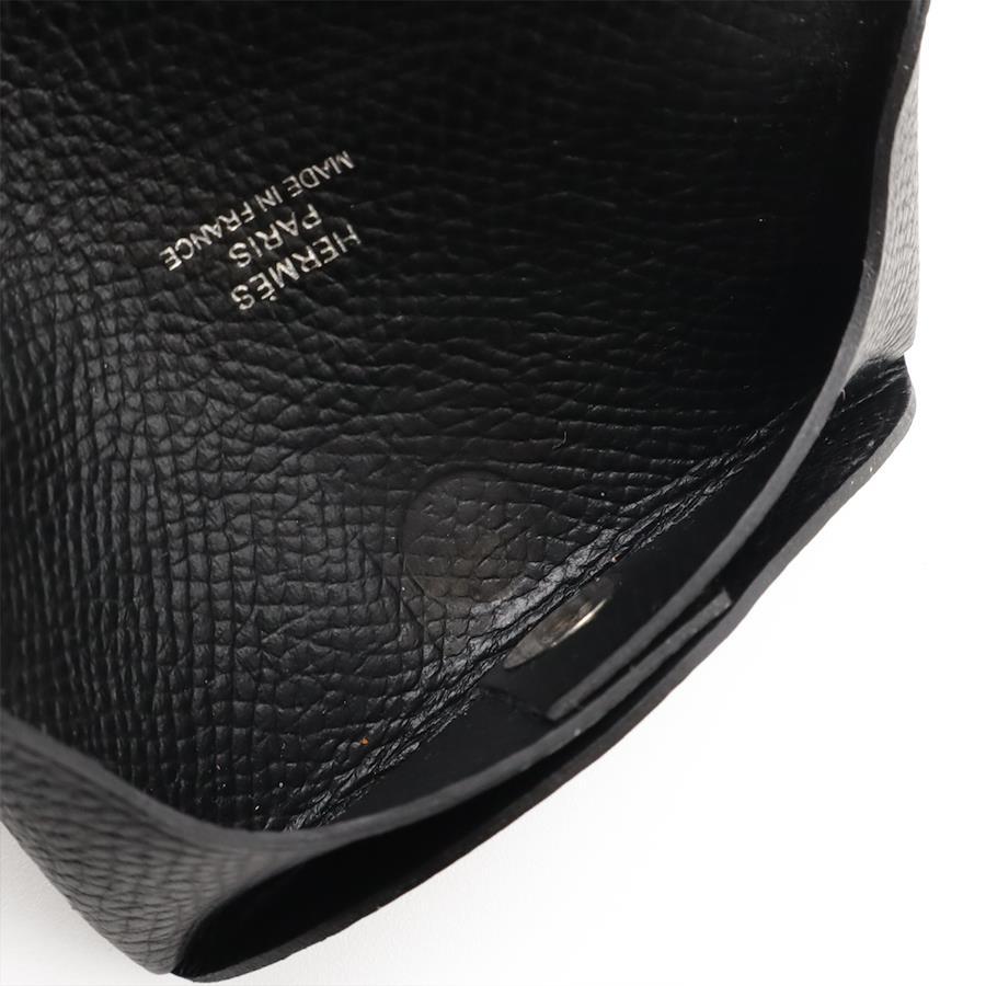 HERMES Bastia Coin Case/Purse, Black Epsom Leather with Silver Hardware, Z Stamp