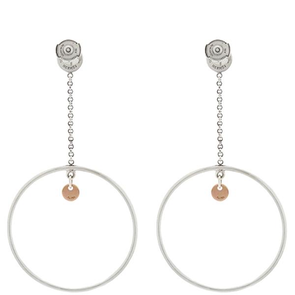 Hermès Ex Libris Hoop Earrings, Silver (Ag925), AU750, Swing Circle