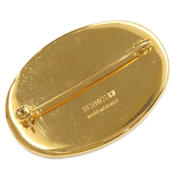 Hermès Enameled Brooch, GP, Enameled, White, Brown, Gold, White, Brown, Oval, Horse Pattern - A Classic, Popular, Excellent Condition