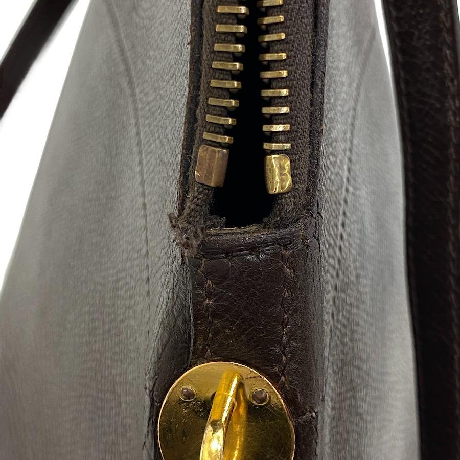 状態 | 外・表面:スレ、キズ、外・ハンドル-ストラップ:スレ、キズ、亀裂 外・コーナー:亀裂、スレ 外・形状:やや型崩れ 内側:スレ、キズ ファスナー部分:くすみ、変色 におい:古い匂い 金具部分:スレ、くすみ 全体的にリカラー跡あり、ファスナーエンド裂けほつれ有 |