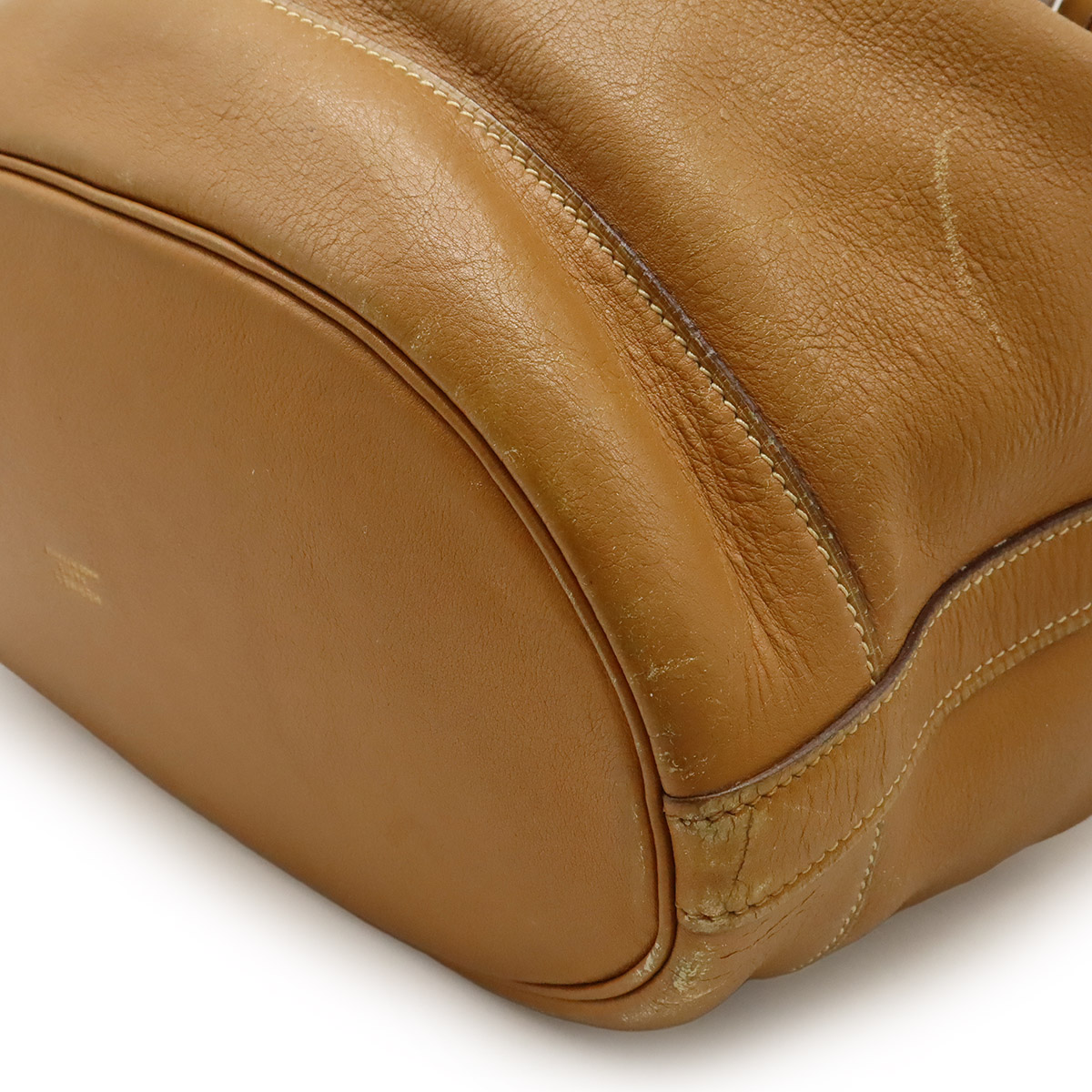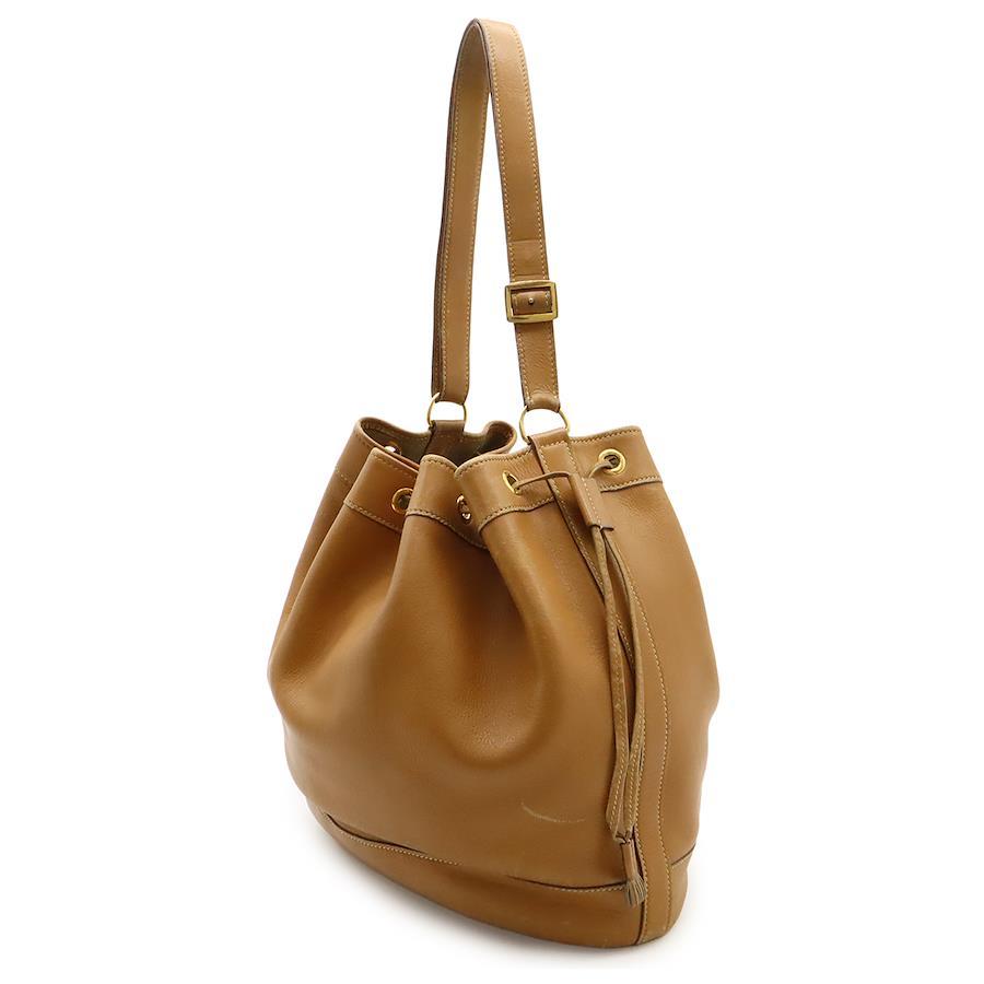 【コメント】使用感のあるお品物でございます。上質なレザーが高級感のある巾着型ショルダーバッグ。マチがあるので収納力もあり、普段使いからお出かけまで幅広くお使いいただけます。