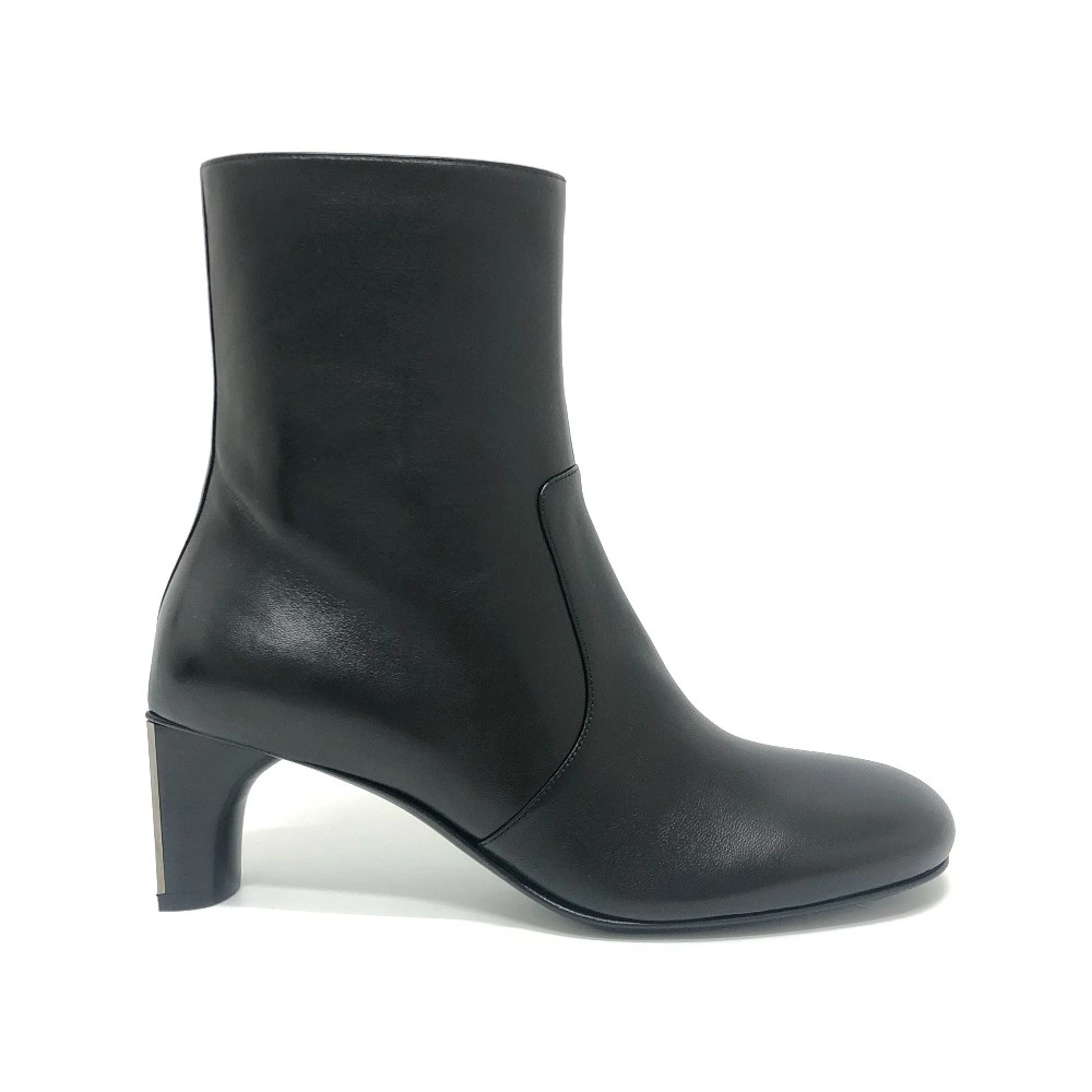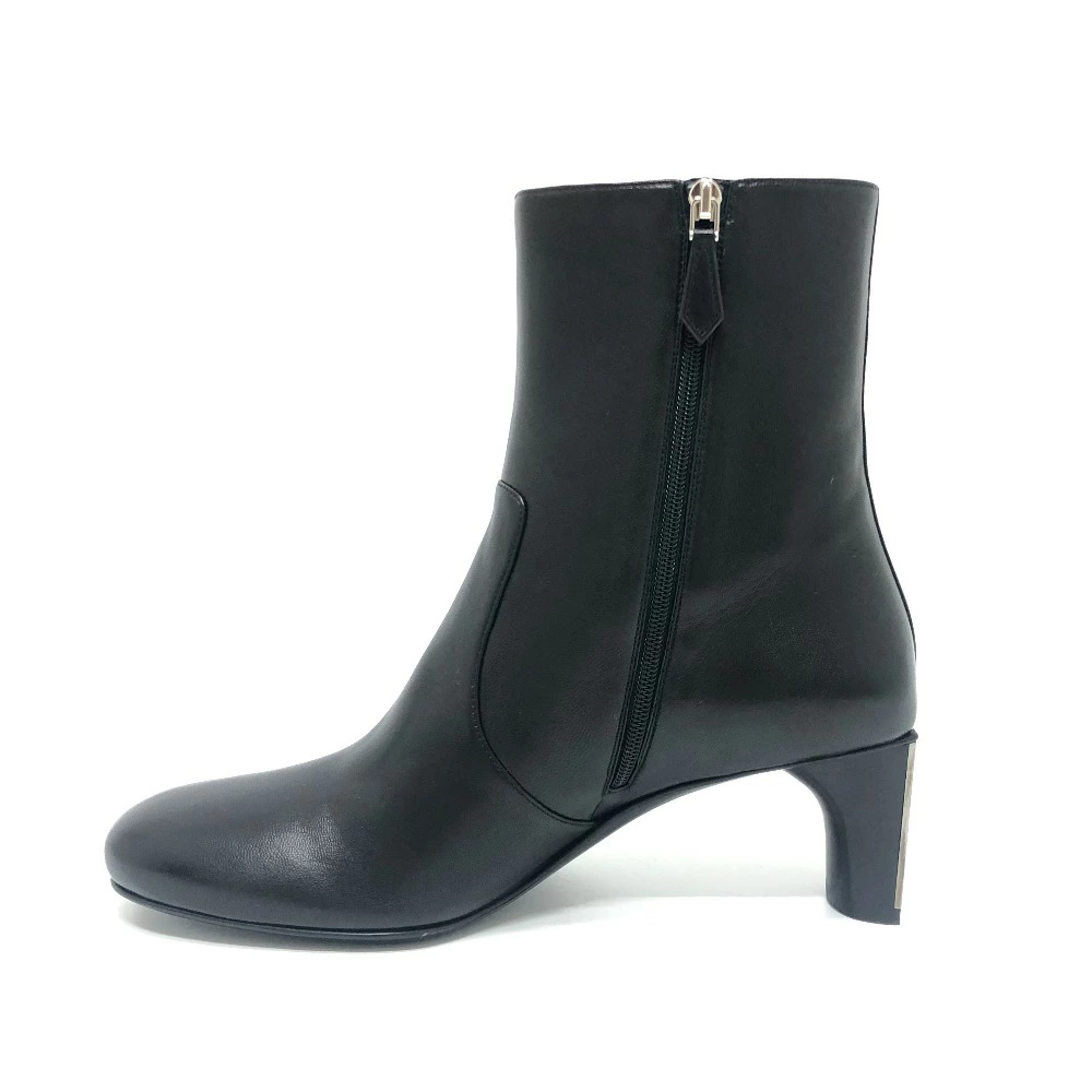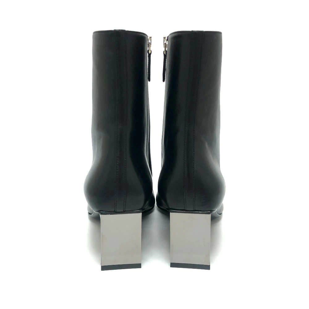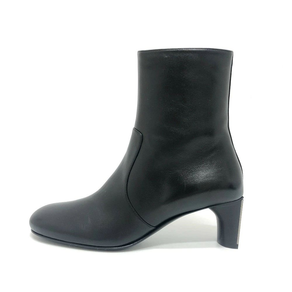 商品説明クラシックなショートブーツに、コンテンポラリーな「ミラーヒール」を組み合わせたエッジの効いたデザインが魅力です。55mmのヒールは、長時間の着用でも疲れにくく、立ち姿を美しく整えますどんなコーディネートも一瞬でクラスアップさせてくれる、ワードローブの主役級アイテムです。