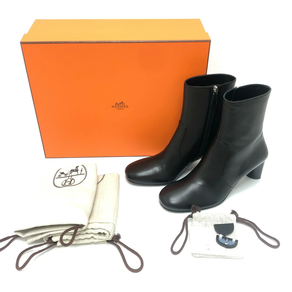 HERMES Lisa 55 Lisa Shoes Ankle Boots Short Boots Leather Women's Black [New]
