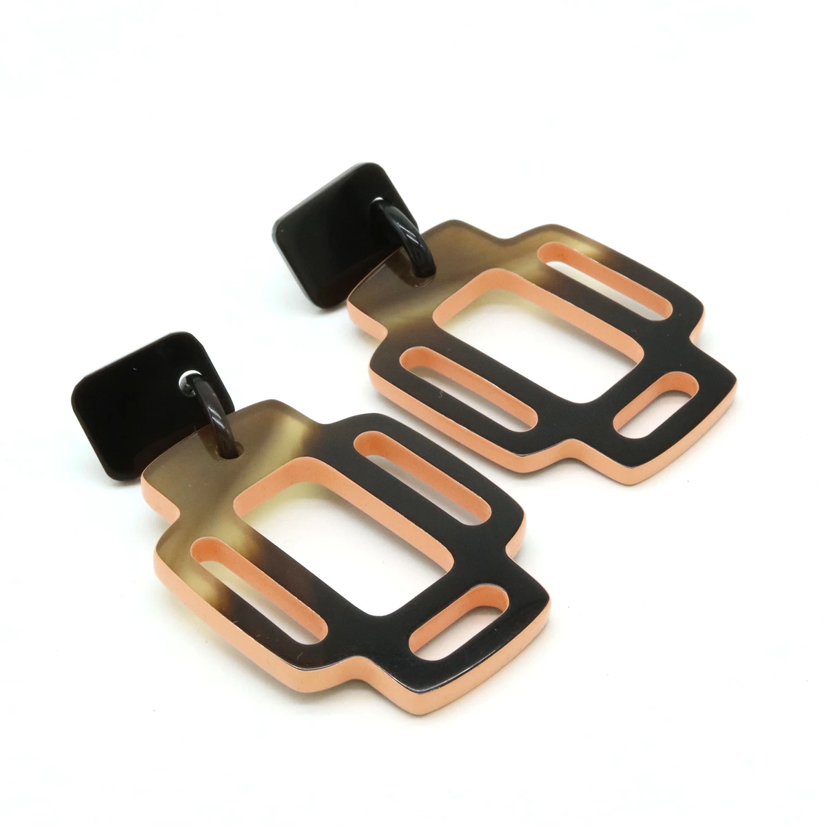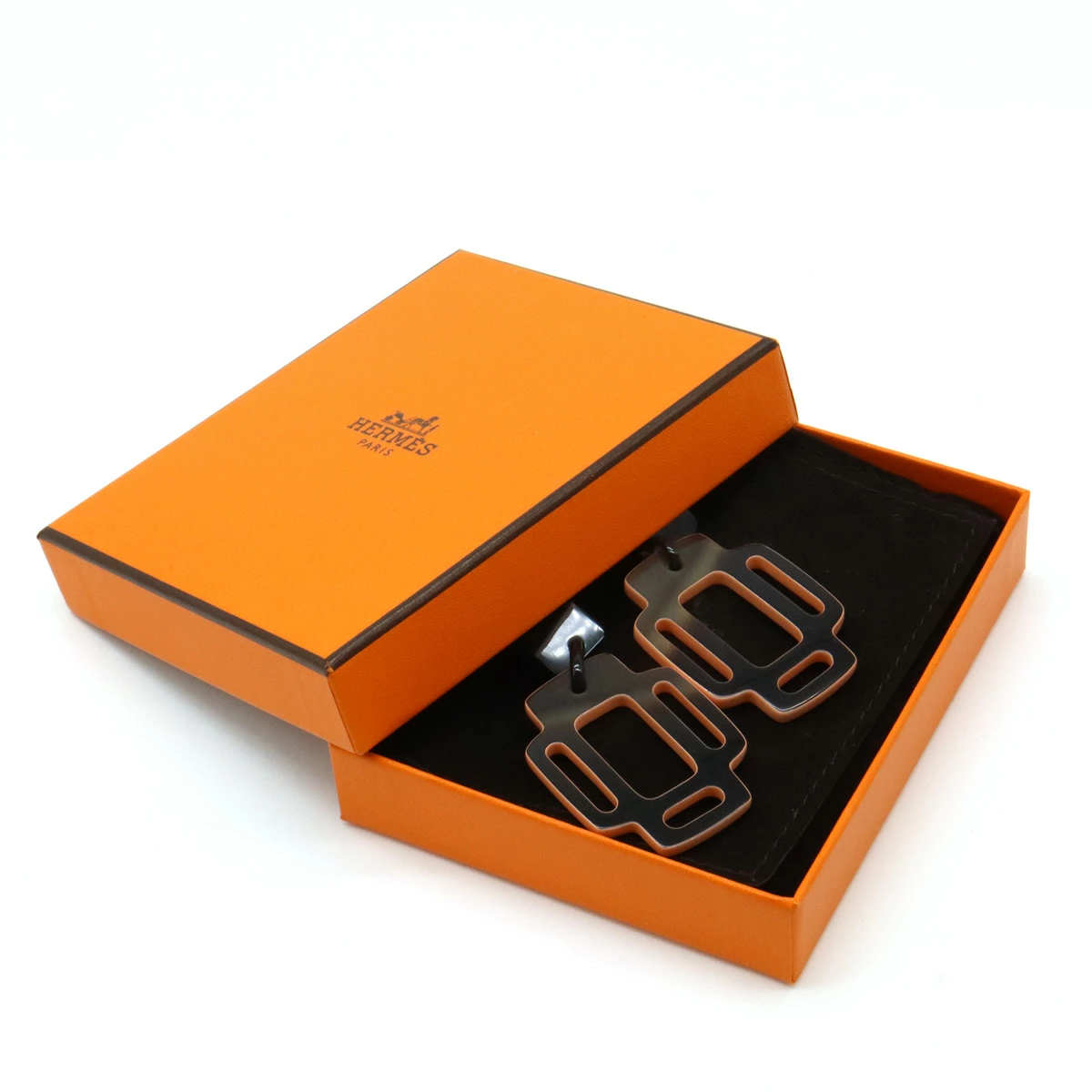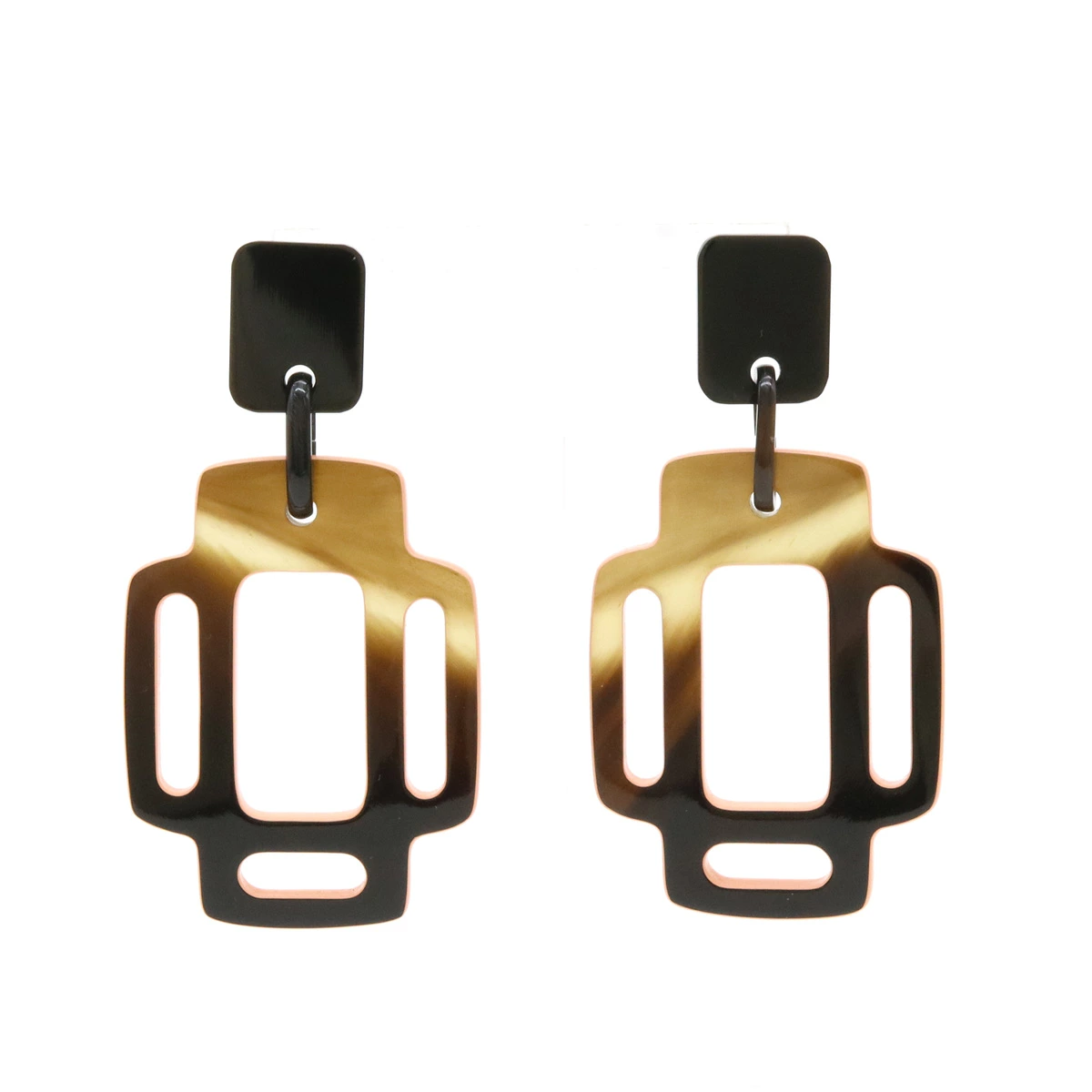 天然素材のためひとつひとつの風合いが異なることでも人気のバッファローホーンを使用したピアス。