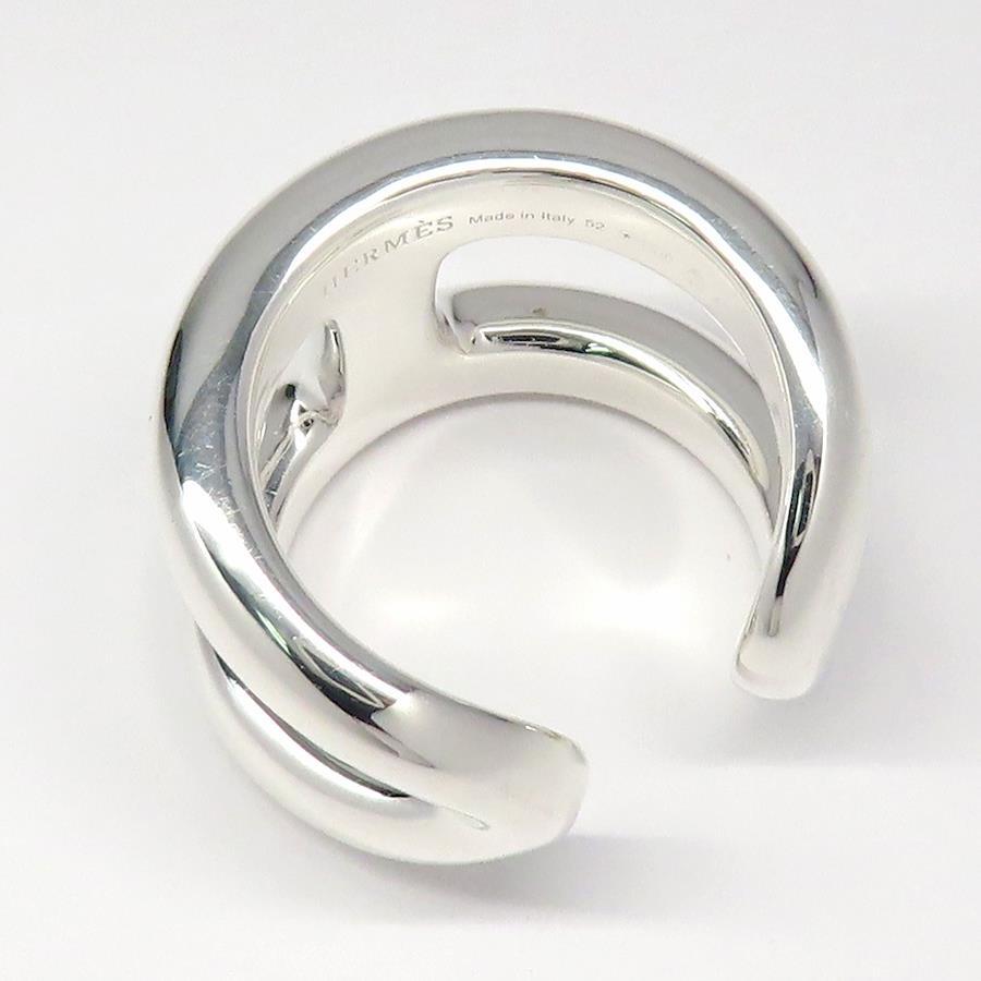 Product Rank: AProduct Condition: There are minor scratches, but the overall condition is excellent.To maintain the proportions, the ring has not been polished at our store.It has been ultrasonically cleaned at our store.Please check the images for details and feel free to contact us with any questions.*The texture and color may appear different from the actual product depending on the shooting environment and your monitor settings.Brand: HERMESProduct Name: Osmos GM RingModel Number:Serial No.: 24*******Stamp: 24******* HERMES Made in Italy Ag925 52Material: Ag925Stone:Color: SilverSize: Size: 52 (approx. 12)Width: (approx.) 1.7cmPlease refer to the image for details.Please allow for slight variations in size.Weight: (approx.) 15.4gPrice:Accessories: Ring onlyIncludes our original box.