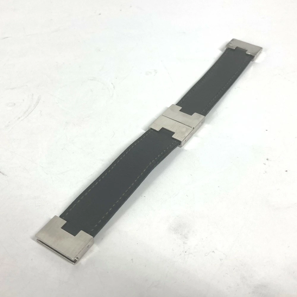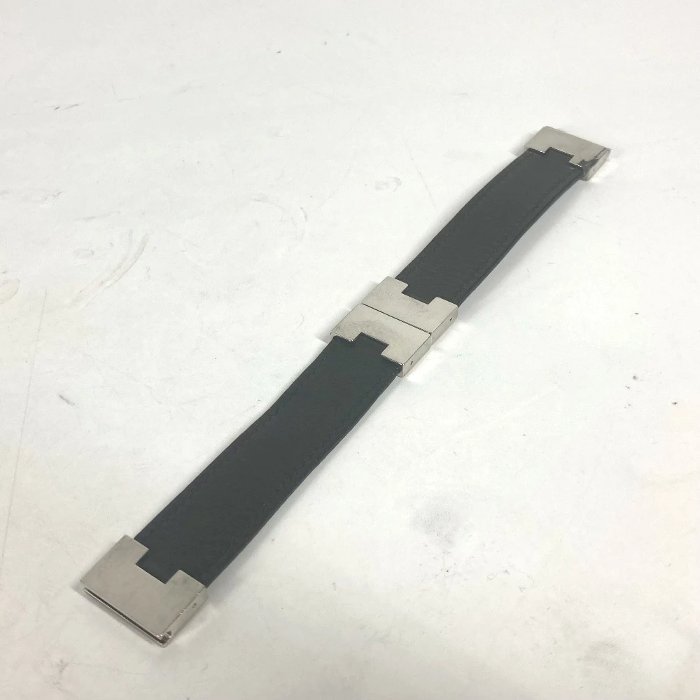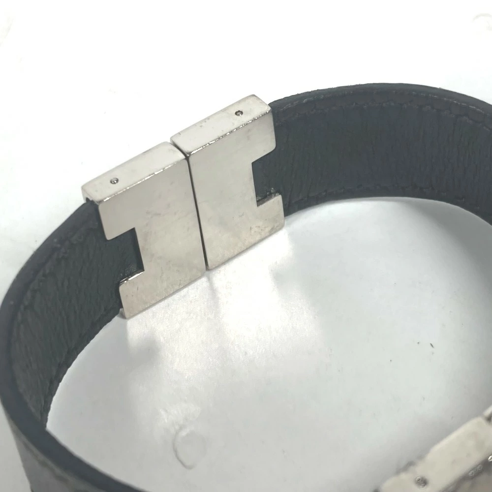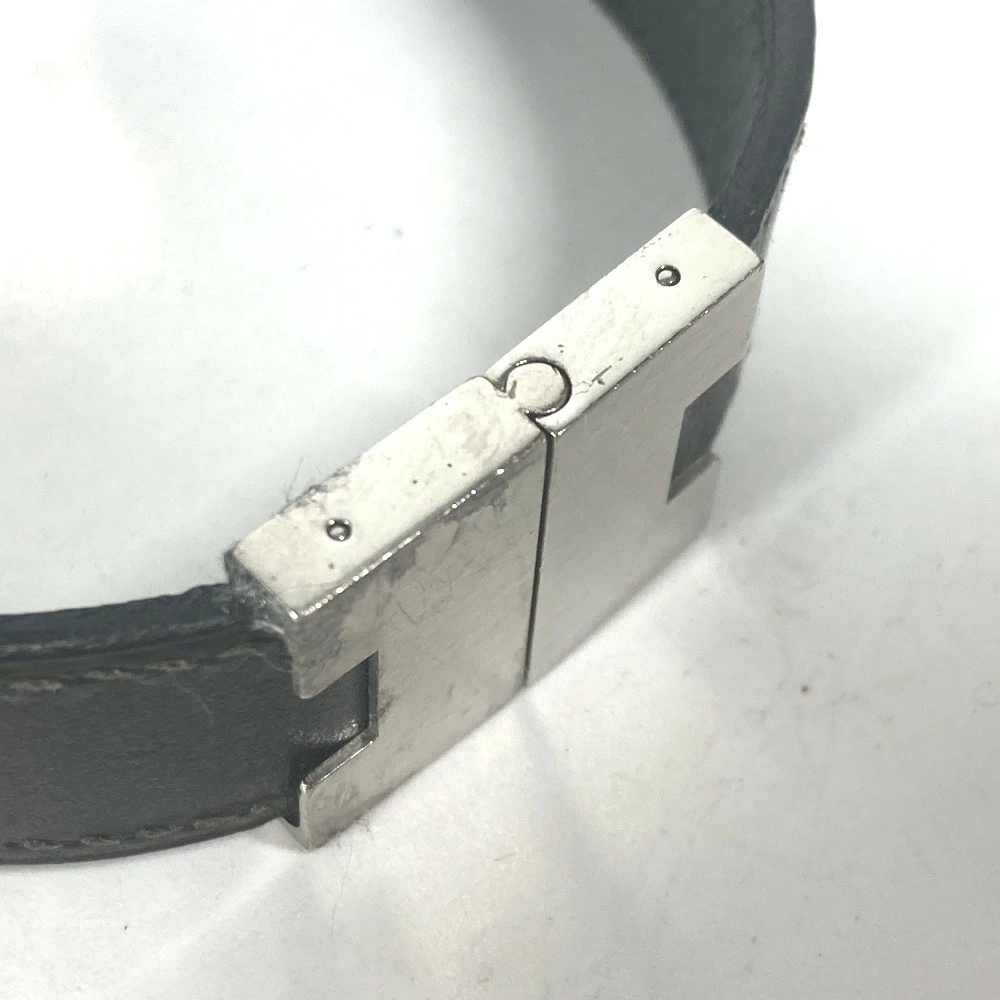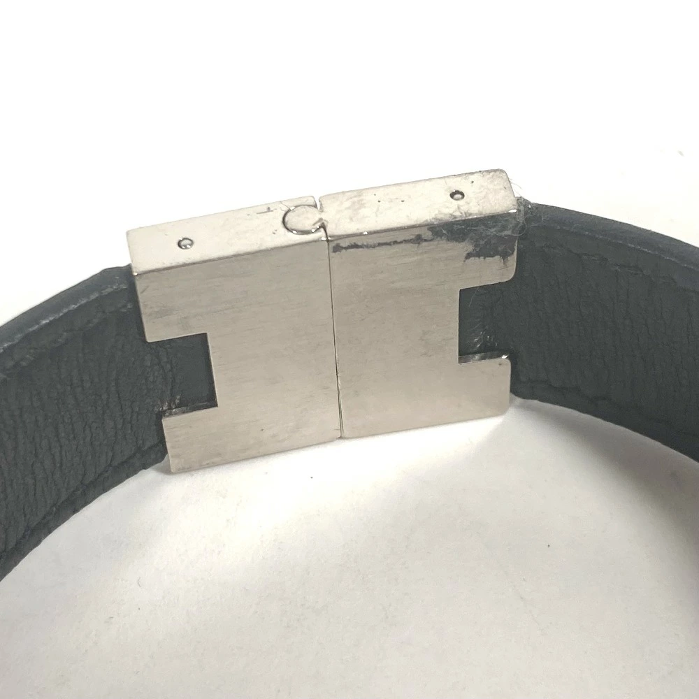 Pre-owned HERMES Lurie H logo bracelet in black leather for women.