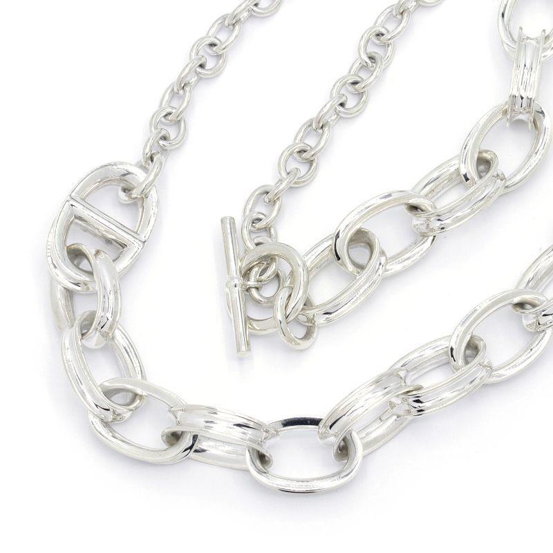 Brand: HermèsProduct Name: HermèsModel Number: H120100B00Size: Effective Length 90cm, Chain Width 10.6mm-23.7mmStamp: HERMES Ag925, Serial No.: Made in ItalyMaterial: SV925Weight: 265.1gList PriceAccessories: Pouch (Interior has storage scuffs)Condition: A-Minor scuffs throughout.Comment: This item has been authenticated and is authentic.
