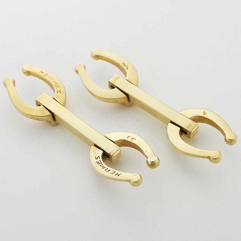 Hermes Vintage Jewelry Horseshoe Cufflinks 750YG Gold RB