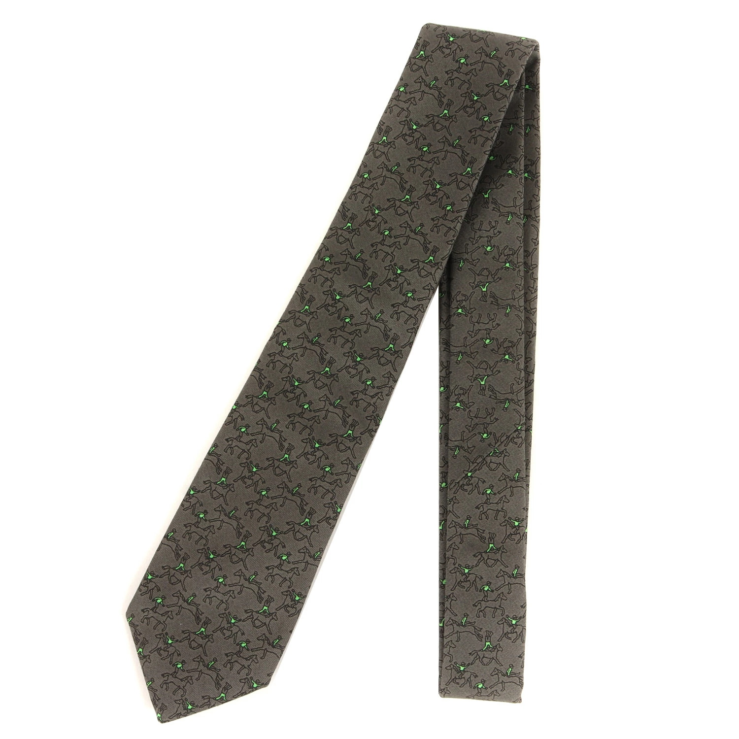 HERMES Equestrian Print Cotton Tie, Recent Model, Gray, Made in France, Formal, Business, Office, Casual, Men's [K4619]