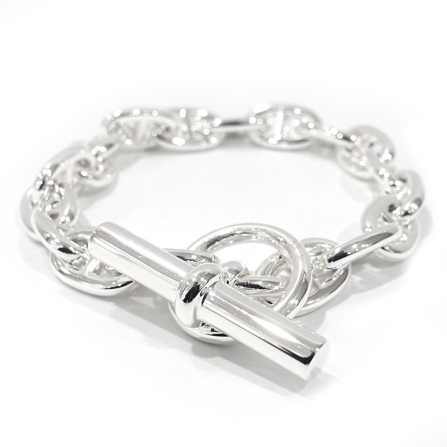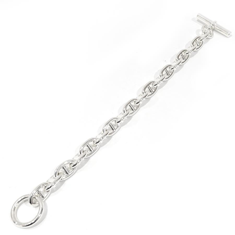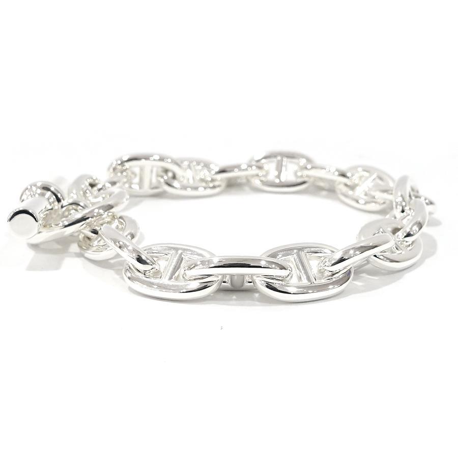 Product Rank: SProduct Condition: This item is unused, but has some scratches from display and trying on.Although we take great care, as this item was displayed in a store, there may be very slight scratches or scuffs.Please view the images and feel free to contact us with any questions.*The texture and color may appear different from the actual product depending on the shooting environment and your monitor settings.Brand: [HERMES]Product Name: Chaine d'Ancre MM Bracelet, 18 LinksModel Number:Serial No. 25*******Stamp:Material: SV925 SilverStone:Color: SilverSize: MM Size, 18 LinksApproximate Total Length: 23.0cmApproximate Wrist Circumference (Inner Circumference): 19.5cmWeight: 66.1gReference Retail Price:Accessories: Box