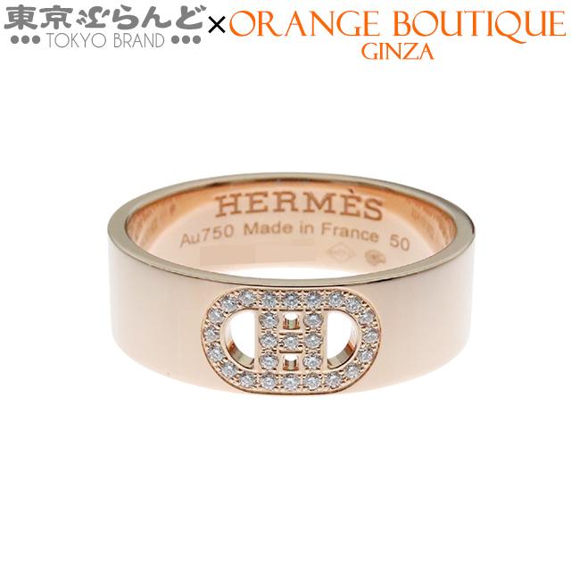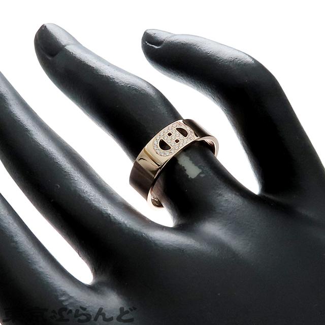 Hermès H Dunkle Ring, Pink Gold, K18PG, Diamond, PM, Robert Dumas, #50, Size 10, Women's, Polished