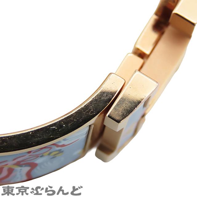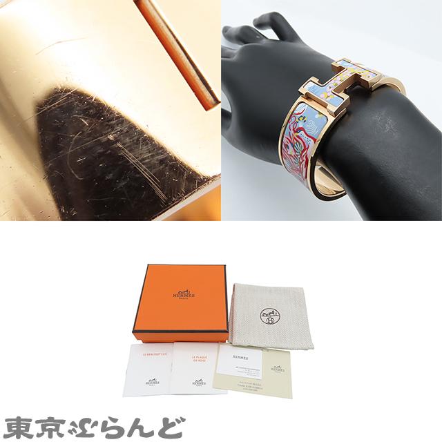 BrandHermèsProduct NameClick-Clack H Emile One Night Story BraceletMaterialEnamel and MetalSizeWrist Circumference: 16cmBand Width: Approx. 19.9mmColorPink GoldAccessoriesBox (damaged)Dust BagBooklets (x2)Shop CardLeafletItem Scores8.5NoteThere are minor scratches and dents, but overall it is in very good condition.
