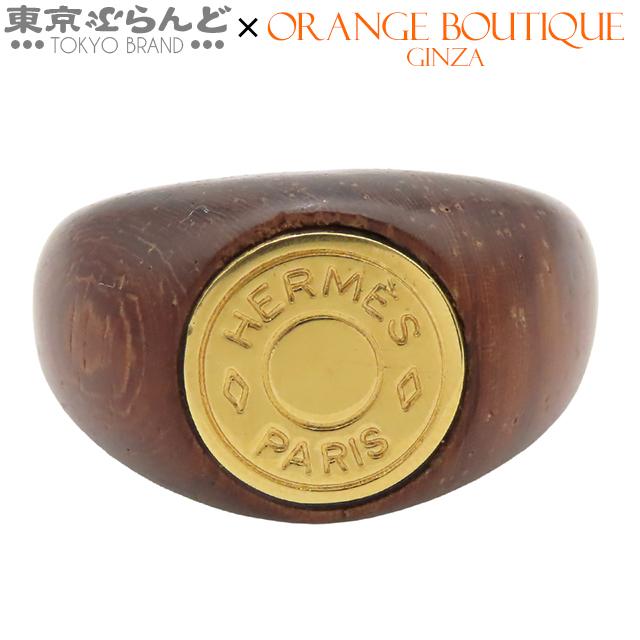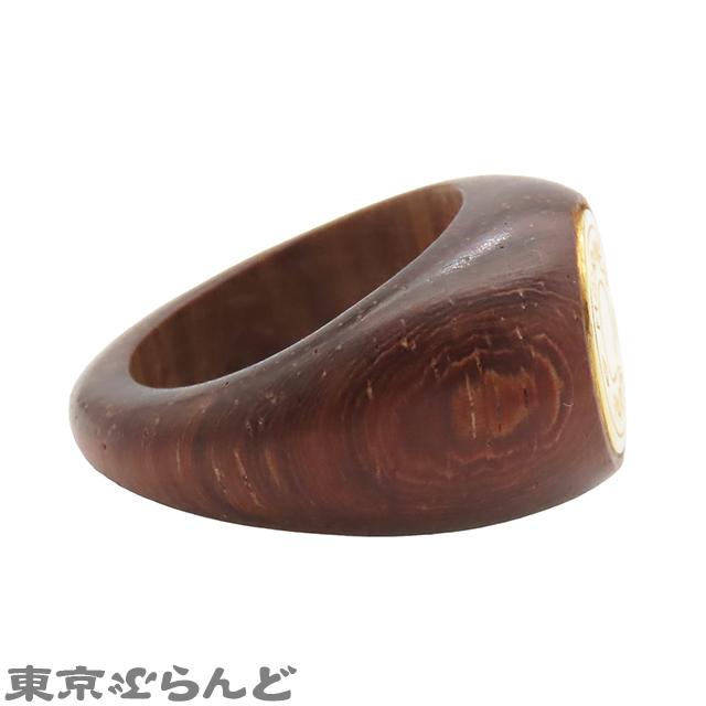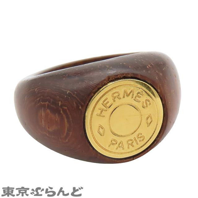 Hermès Serie Ring, Gold and Brown Wood and Metal, GP Size 14 (Equivalent), Women's