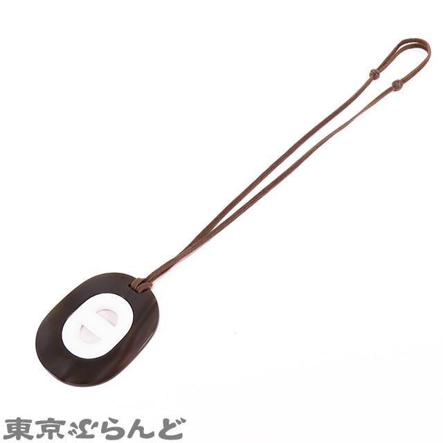Hermès Fidelio Village PM Brown and White Buffalo Horn Lacquer Pendant Necklace