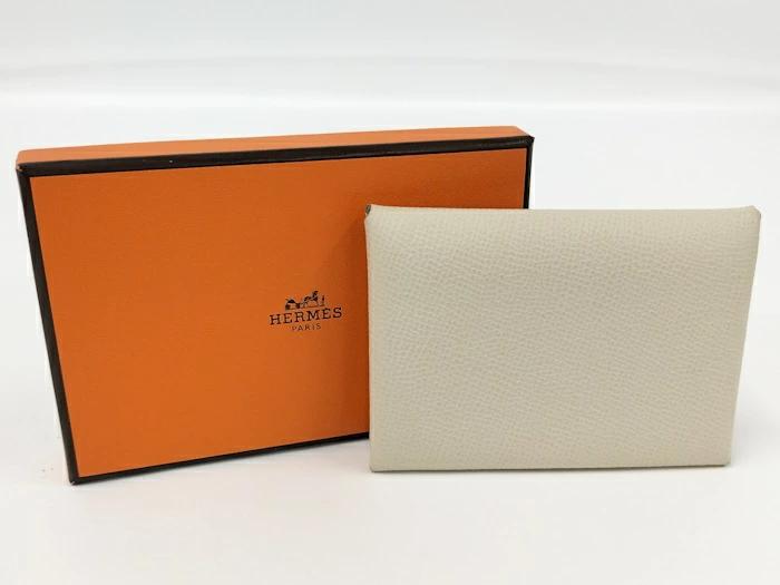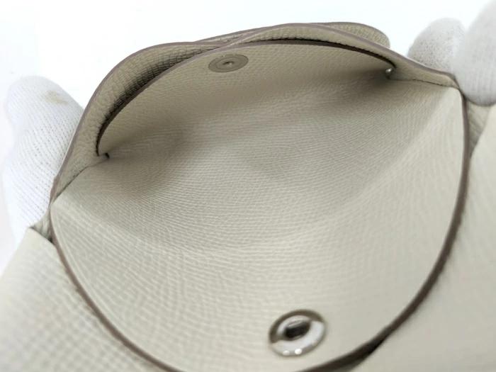 HERMES Calvi Duo Coin Case, Epsom Leather, Ivory, U Stamp