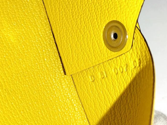 [商品情報]・カラー:イエロー・素材/ライン:シェーブル・サイズ:最大約 W10×H7(cm)・シリアル:D刻印