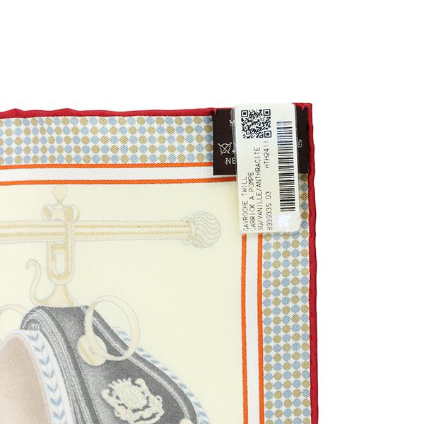 【ブランド】HERMES エルメス------------------------【商品名】ガヴロッシュ------------------------【ライン】カリック・ア・ポンプCarrick a Pompe------------------------【型 番】H893933S 03------------------------【製造番号】2025春夏コレクション------------------------【製造国】フランス------------------------【カラー】・Vanille / Anthracite / Rougeヴァニーユ(オフホワイト)アントラシト(グレー系)ルージュ(レッド)------------------------【素 材】シルク100%ルロタージュ仕上げ(手作業で施された縁かがり)------------------------【サイズ】約:縦45cm × 横45cm※手作業で縁かがりを施している為、サイズには数cm程の個体差が生じます。------------------------【付属品】純正箱------------------------【参考定価】50,600円